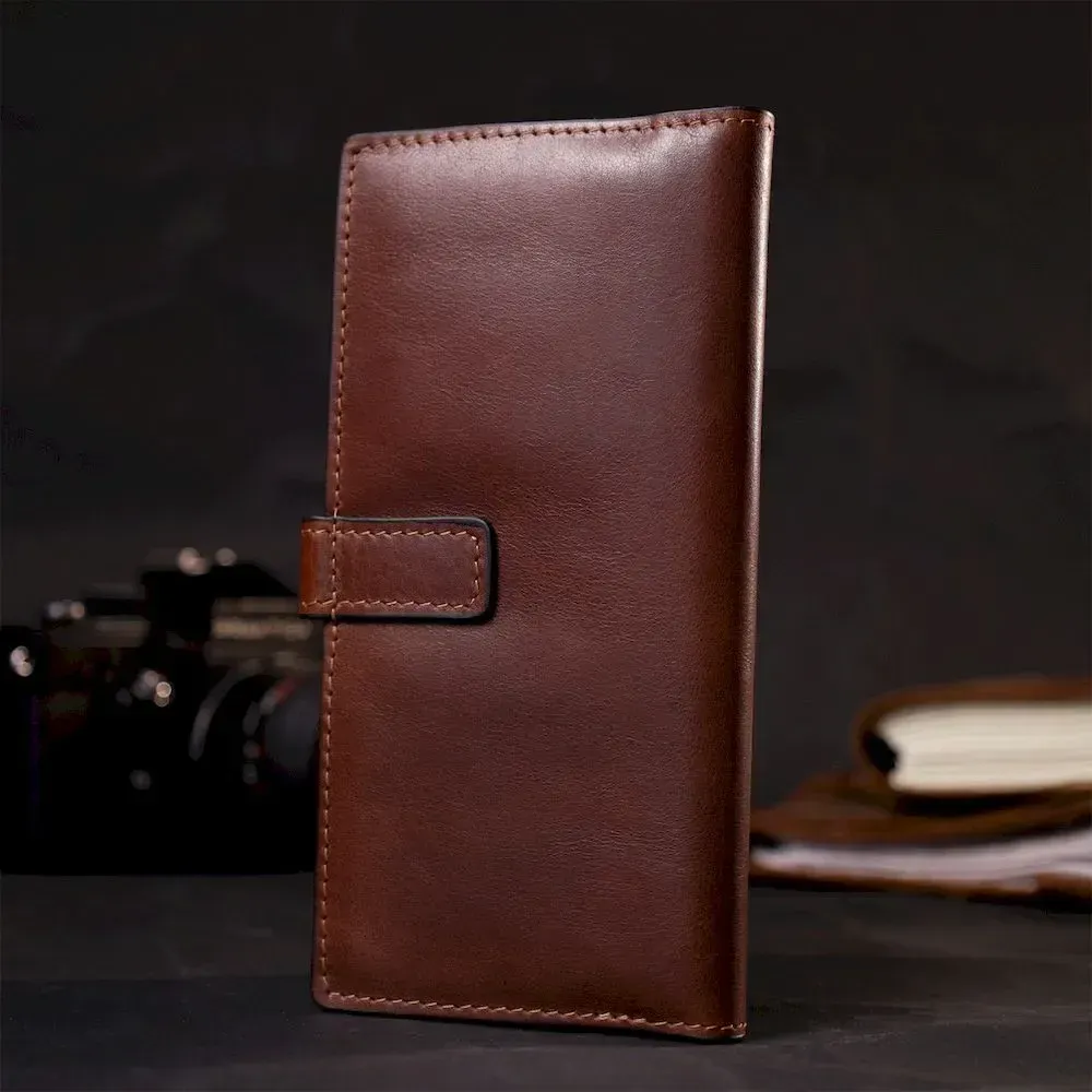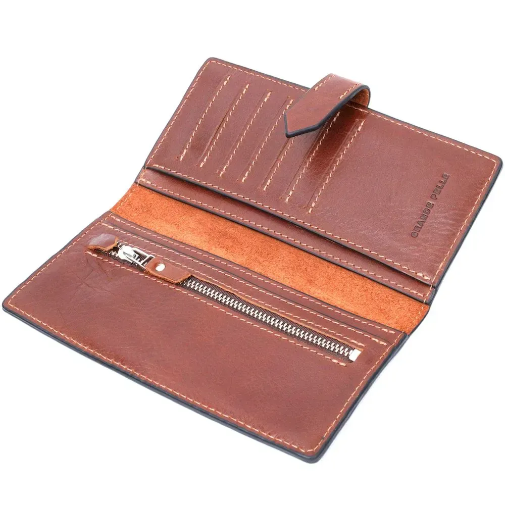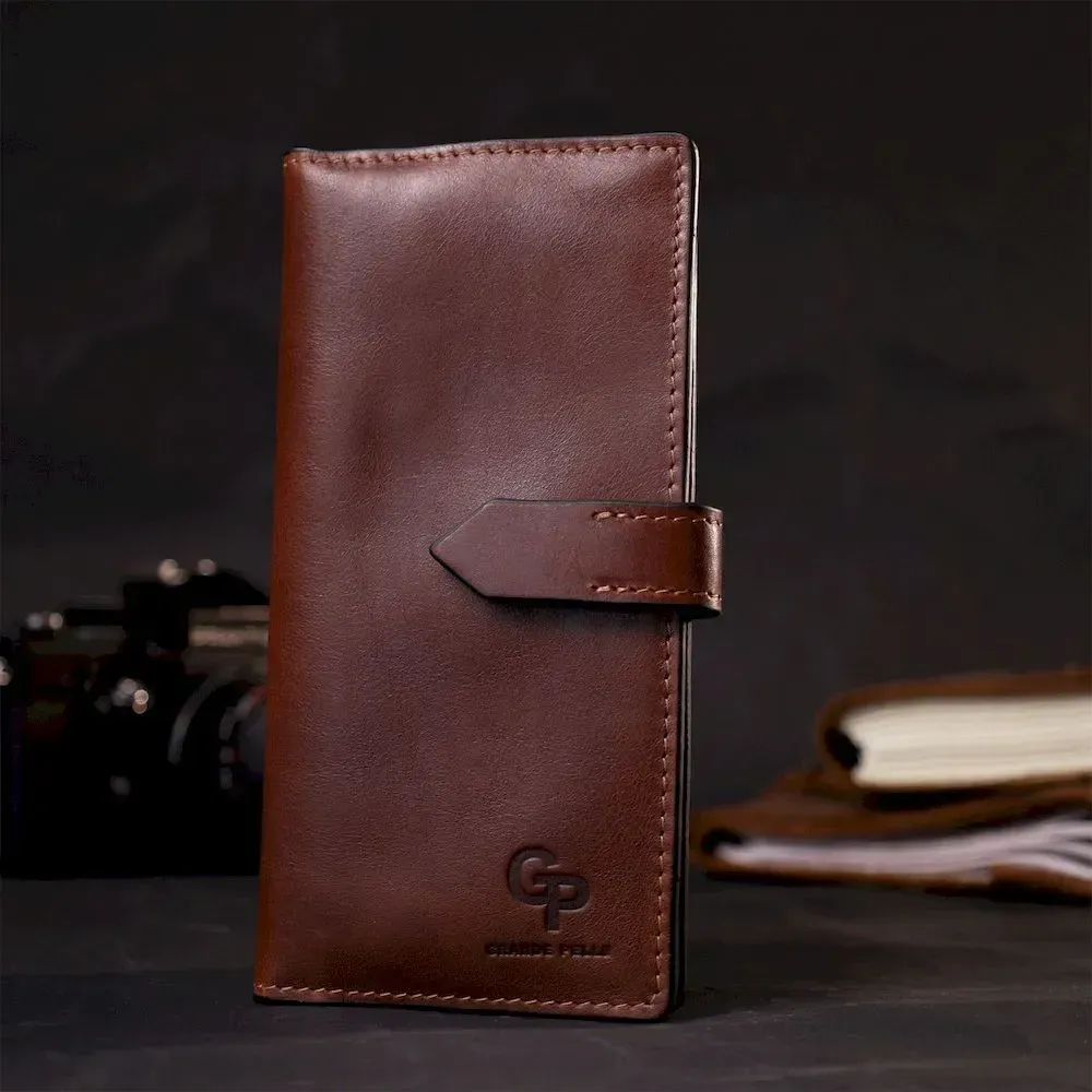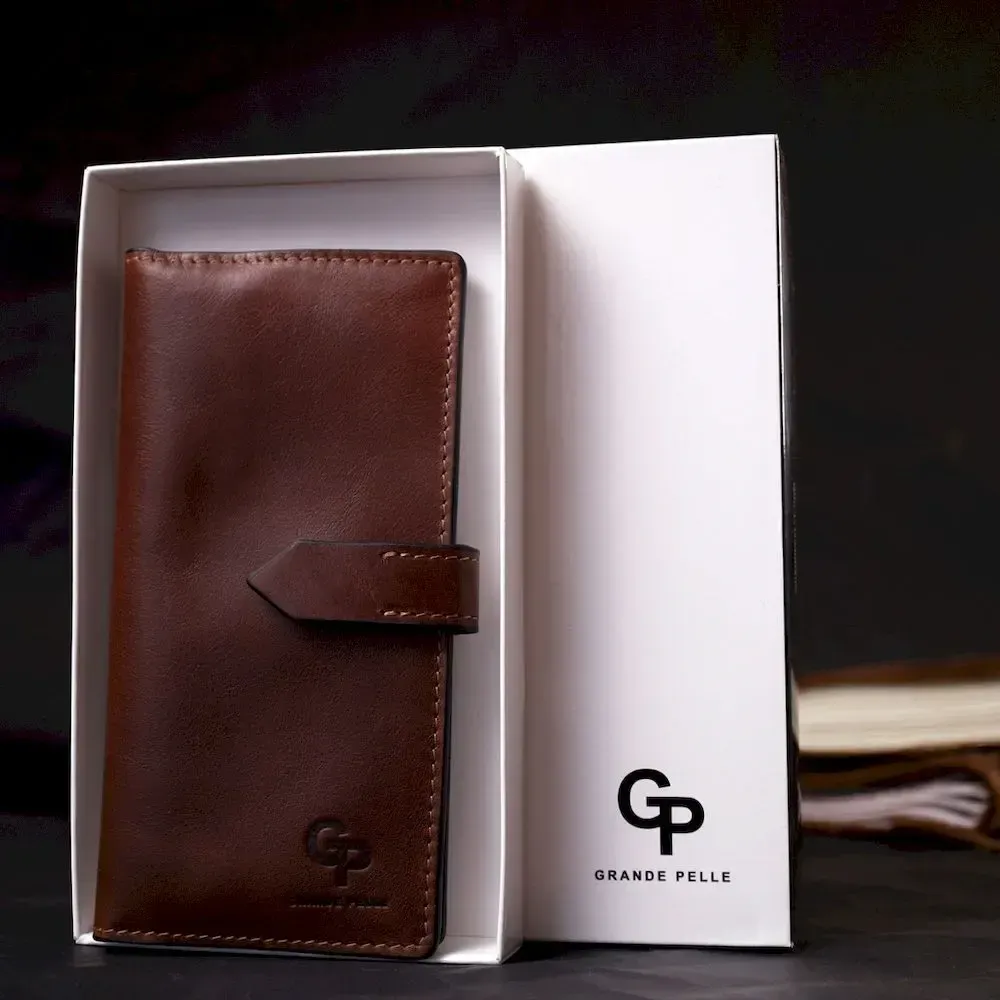 Цікавий вертикальний гаманець із натуральної шкіри GRANDE PELLE 11660 Коричневий