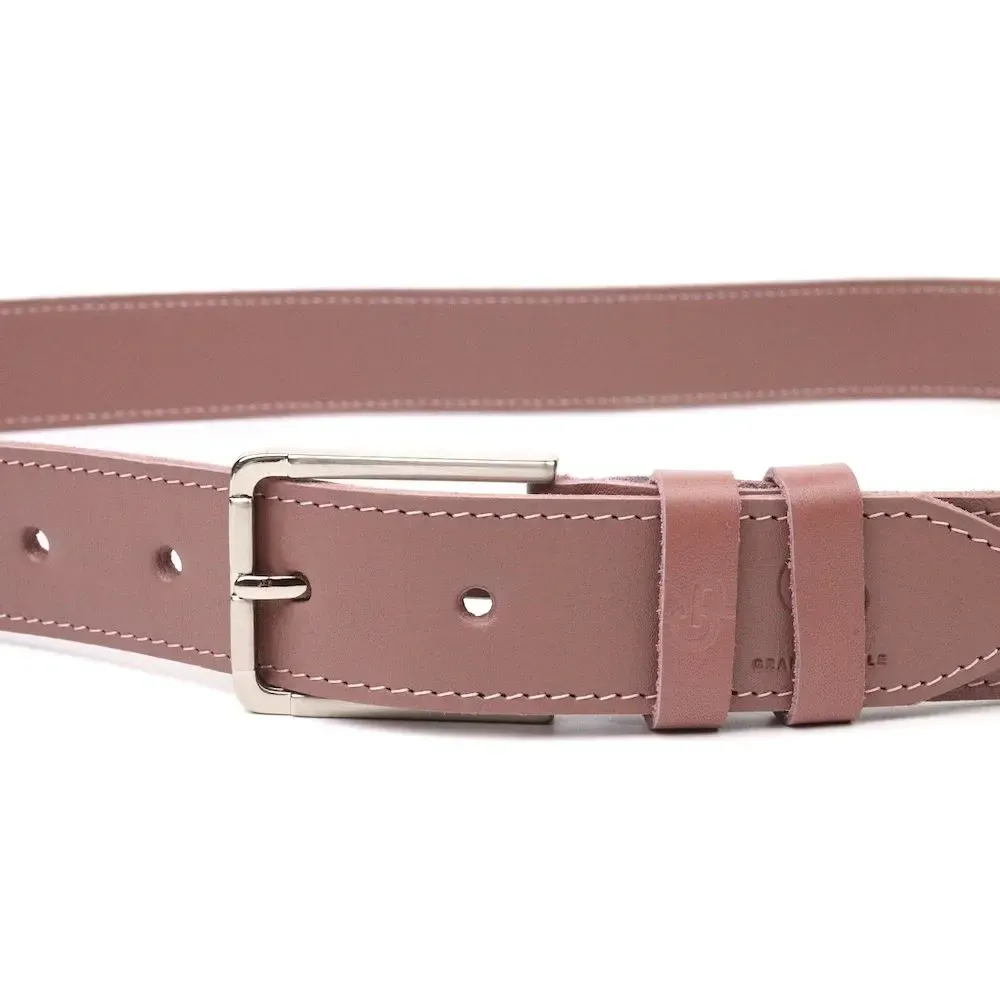 Ніжний жіночий ремінь із високоякісної італійської шкіри. Виріб прошито по краях рівним рядком рожевого кольору, що надає йому стильного та вишуканого вигляду. Аксесуар буде відмінно поєднуватись, як із брюками, так і з джинсами. Пряжка виконана з якісної фурнітури, із закругленими краями, дуже акуратна та стильна. Колір пряжки: срібло. Тиснення логотипу бренду додає виробу стилю, а також є запорукою якості та оригінальності продукції. Шкіряний ремінь буде завжди актуальним подарунком для себе, подруги чи колеги.