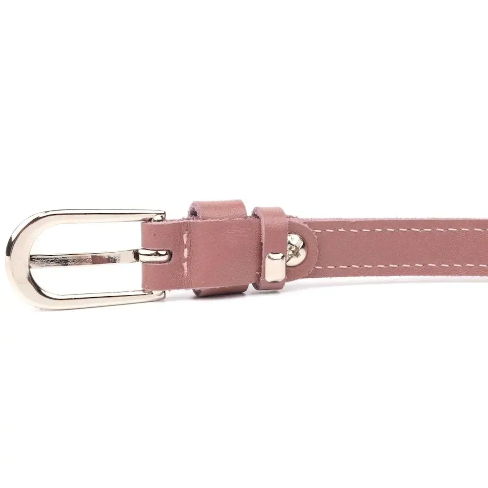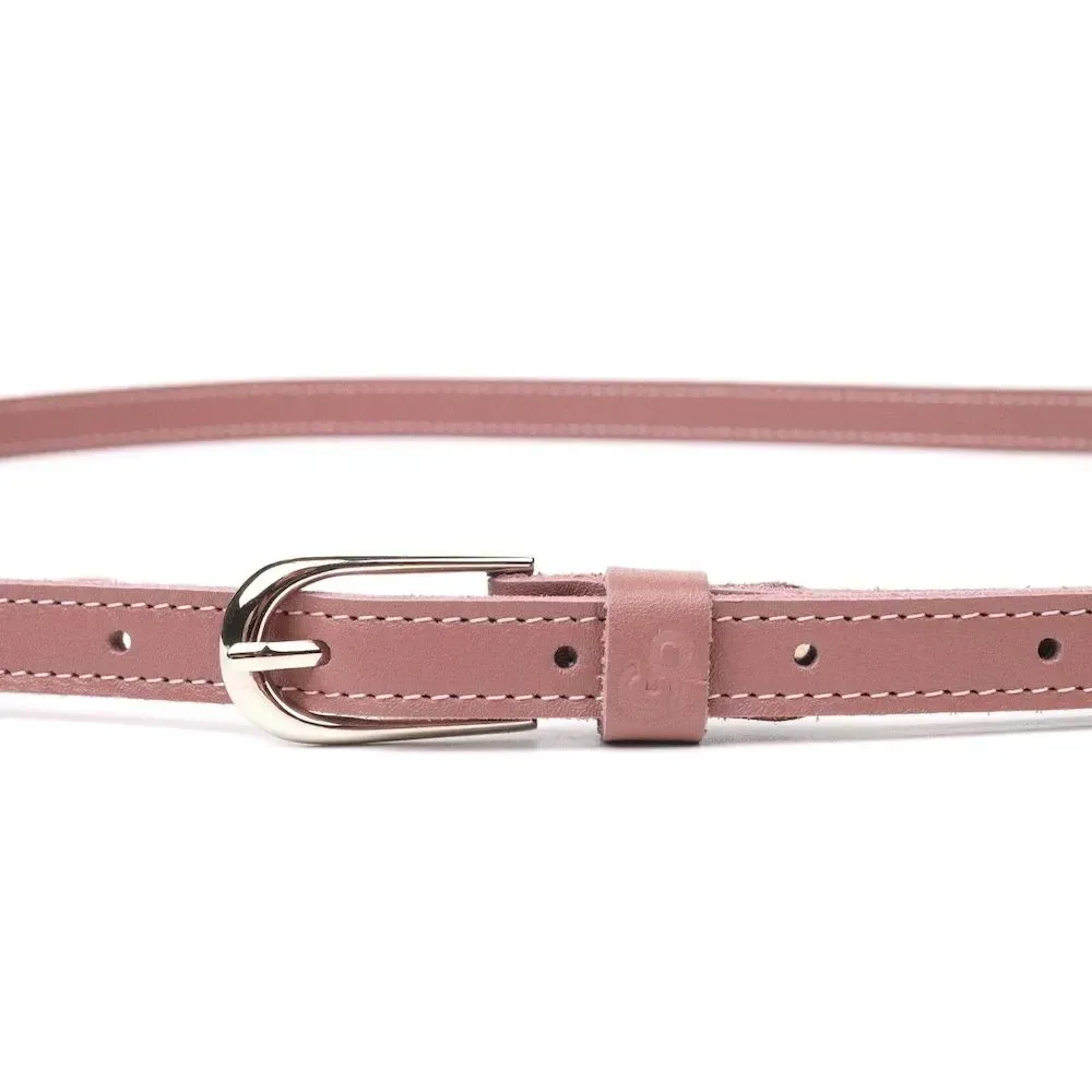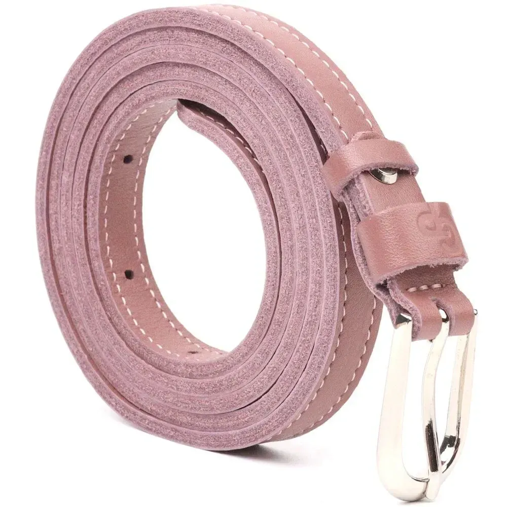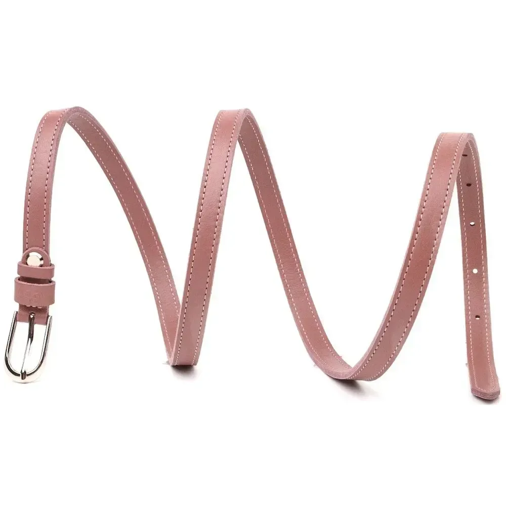 Ніжний жіночий ремінь із високоякісної італійської шкіри. Виріб прошито по краях рівним рядком рожевого кольору, що надає йому стильного та вишуканого вигляду. Аксесуар буде відмінно поєднуватись, як зі штанами, так і з сукнею, блузкою або тунікою. Пряжка виконана з якісної фурнітури, із закругленими краями, дуже акуратна та стильна. Колір пряжки: срібло. Тиснення логотипу бренду додає виробу стилю, а також є запорукою якості та оригінальності продукції. Шкіряний ремінь буде завжди актуальним подарунком для себе, подруги чи колеги.