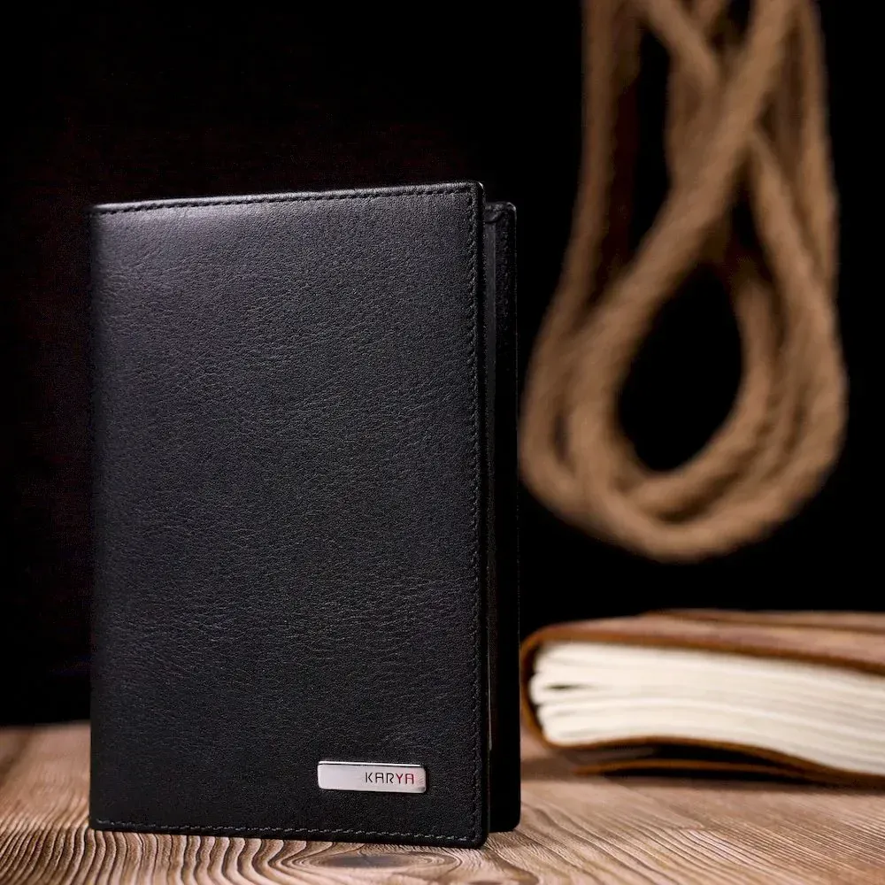 Якісна обкладинка на документи з гладкої шкіри KARYA 20930 Чорний