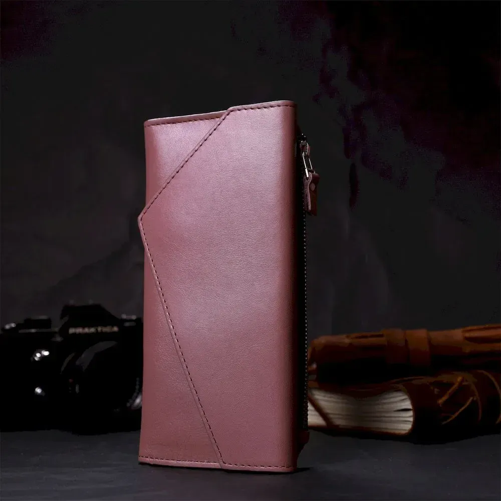 Місткий жіночий гаманець, який також можна застосовувати у вигляді клатчу. Виконаний аксесуар у красивому кольорі, тому підійде під будь-який одяг. Матеріал виготовлення – натуральна високоякісна шкіра з високою стійкістю до зношування. Наповнення представлене у вигляді трьох відділень на всю довжину, маленької кишеньки для дрібниць, що закривається на магніт, одинадцяти слотів для карт та монетниці зовні. Запакований аксесуар у фірмовий чохол.
