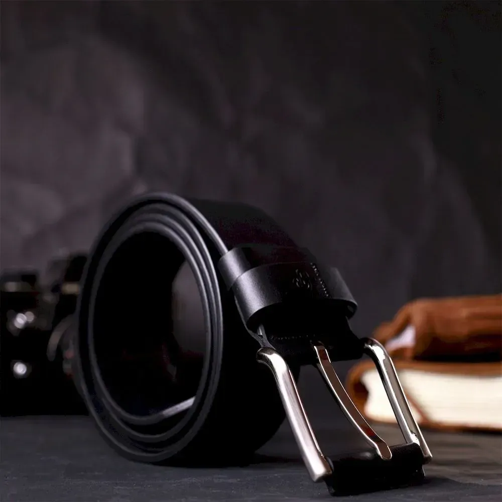 Якісний ремінь під джинси з натуральної шкіри GRANDE PELLE 11685 Чорний
