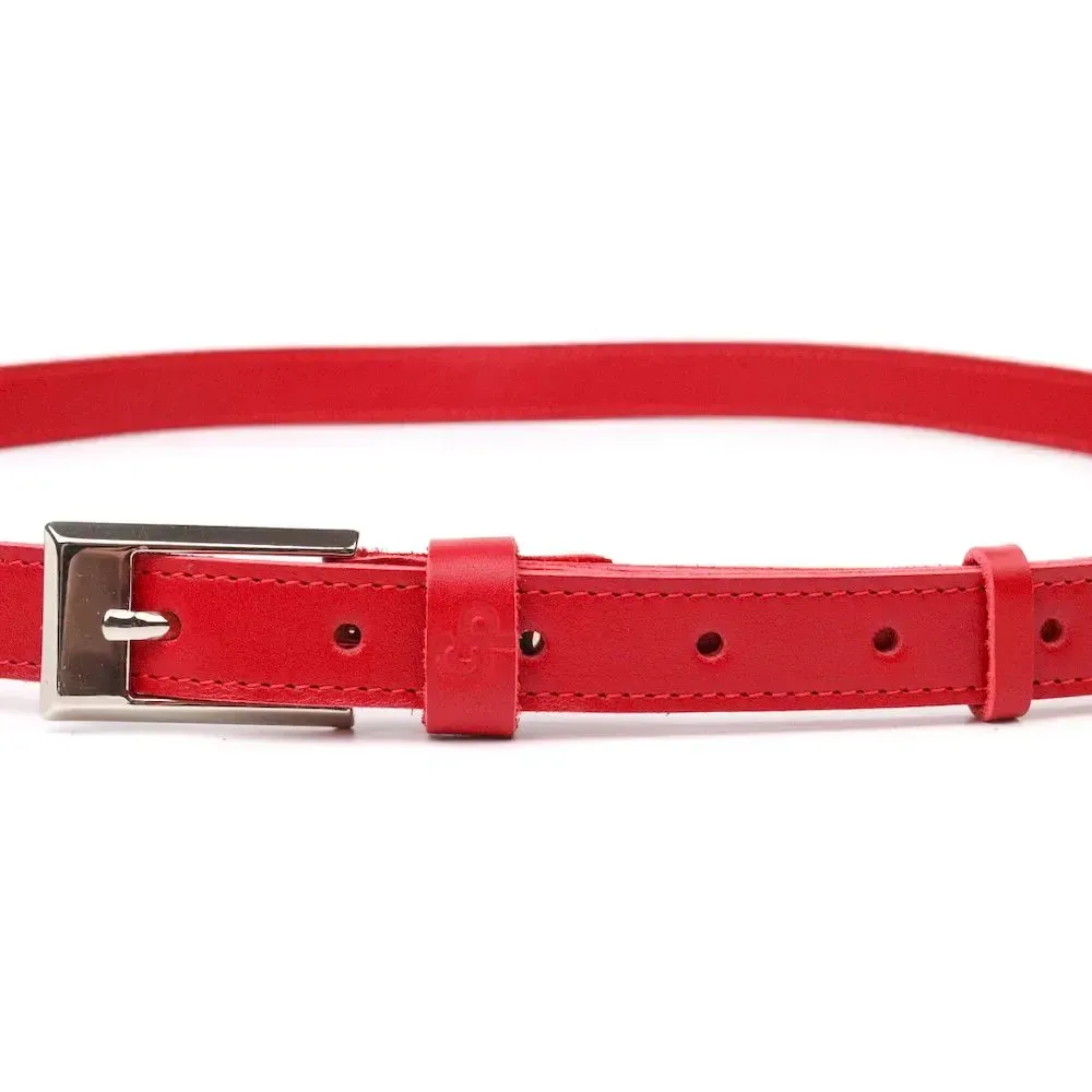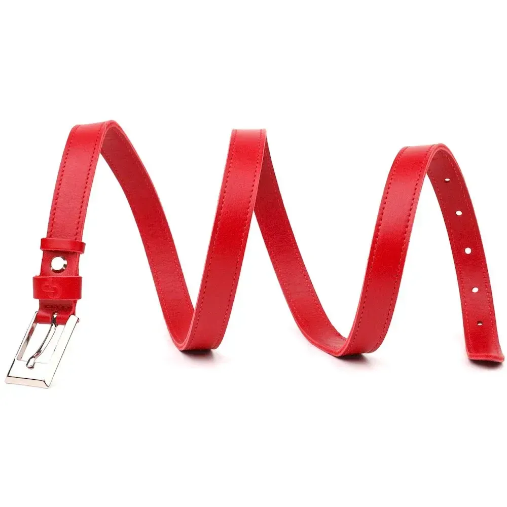 Яскравий жіночий ремінь із високоякісної італійської шкіри. Виріб прошито по краях рівним рядком червоного кольору, що надає йому стильного та вишуканого вигляду. Аксесуар буде відмінно поєднуватись, як зі штанами, так і з сукнею, блузкою або тунікою. Пряжка виконана з якісної фурнітури, з гострими краями, дуже акуратна та стильна. Колір пряжки: срібло. Тиснення логотипу бренду додає виробу стилю, а також є запорукою якості та оригінальності продукції. Шкіряний ремінь буде завжди актуальним подарунком для себе, подруги чи колеги.