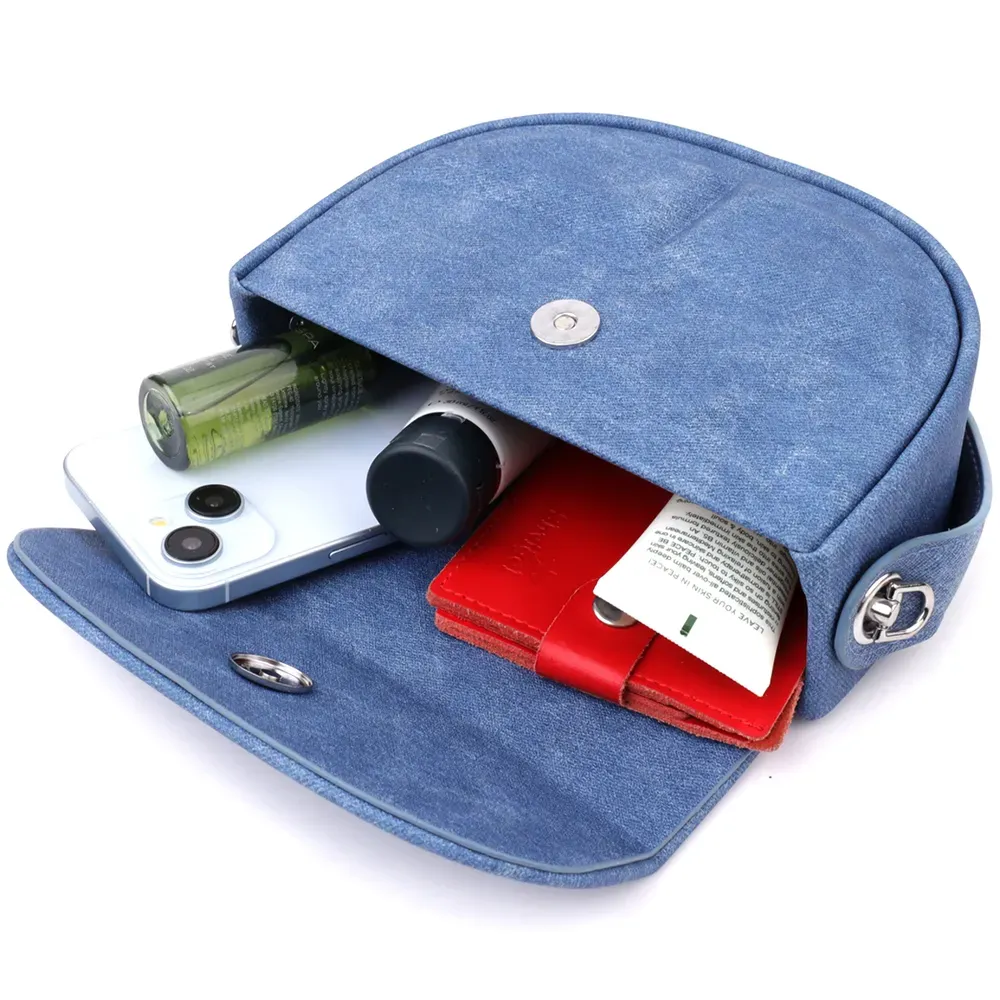 Невелика стильна сумка для жінок з якісного текстилю, відмінно підійде модницям різного віку. Аксесуар дуже легкий і зручний, з приємним синім кольором та текстурою під джинс.Сумка закривається клапаном на магніт. Рекомендуємо вам цю модель для легкої сумки.