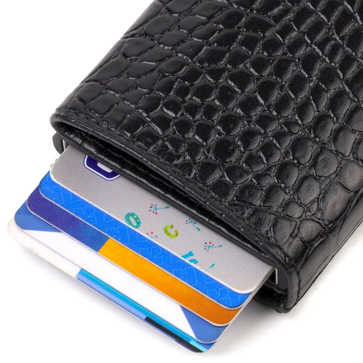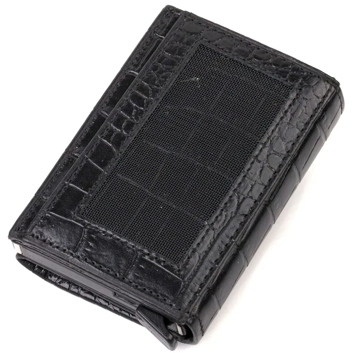Універсальний картхолдер з натуральної шкіри, з тисненням під крокодила, призначений для зберігання банківських та дисконтних карток та невеликої кількості готівки. Аксесуар підходить як жінкам, і чоловікам. Має лаконічний дизайн, відмінно лягає в руку, поміщається в кишеню, а також будь-яку сумку. Шкіра м'яка, приємна на дотик. Механізм працює надійно та зручний у використанні; картки добре закріплені в аксесуарі. Відмінна ідея для подарунка близькій людині.