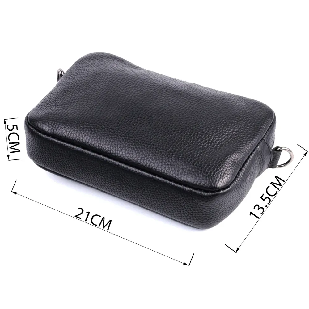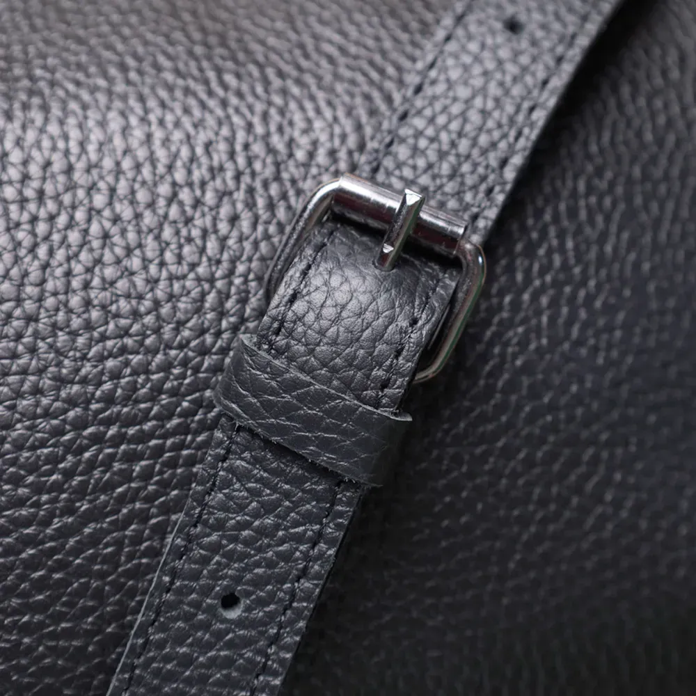 Цікава жіноча сумка, яку можна носити через плече як крос-боді, на плечі і як клатч в руках, для цього ремінець легко відстібається. Виріб виконаний у класичному чорному кольорі із зернистої шкіри, яка м'яка, приємна на дотик та з високими показниками зносостійкості. Відмінний варіант як кожного дня, так і на вечір. Сумка добре тримає форму, має міцну підкладку, фурнітура срібного кольору – стійка не змінює свій колір у процесі носіння. Аксесуар чудово поєднується з усіма стилями в одязі та може стати чудовим подарунком на будь-яке свято.