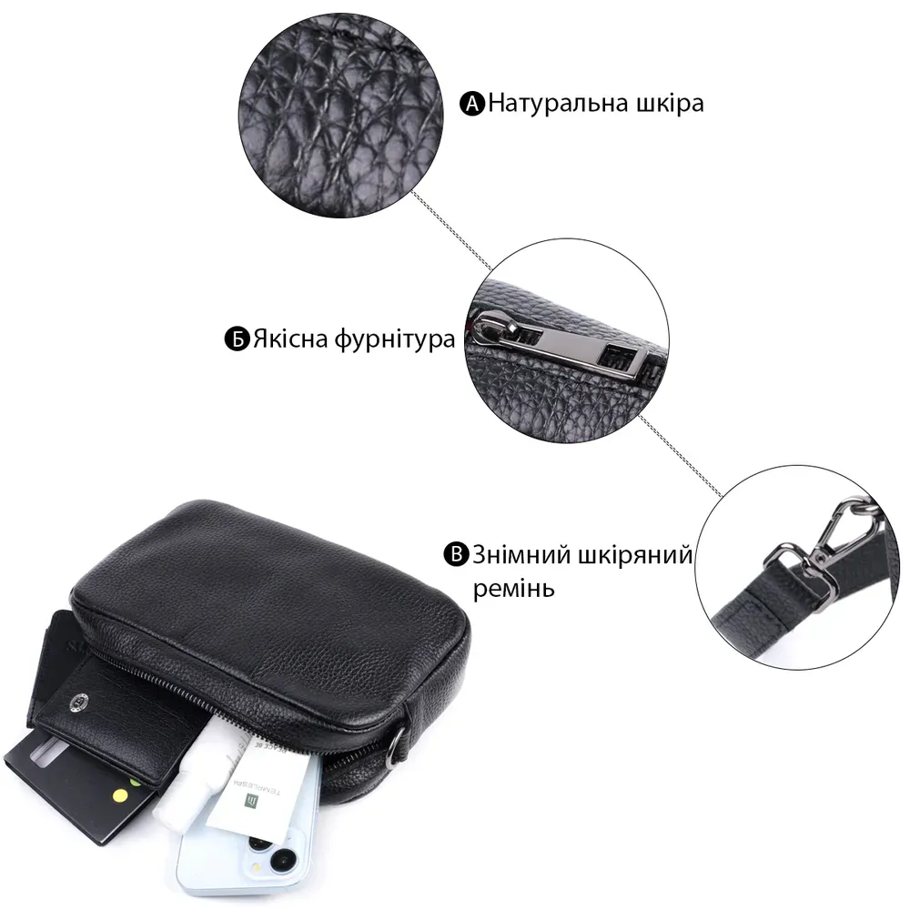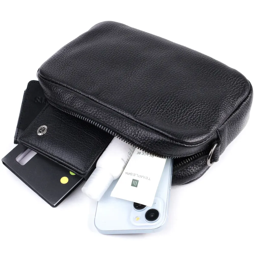 Класична сумка крос-боді із зернистої натуральної шкіри Shvigel 22842 Чорна