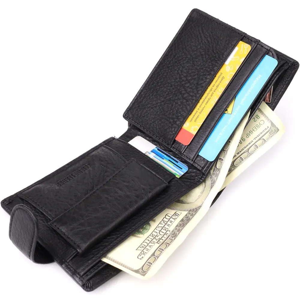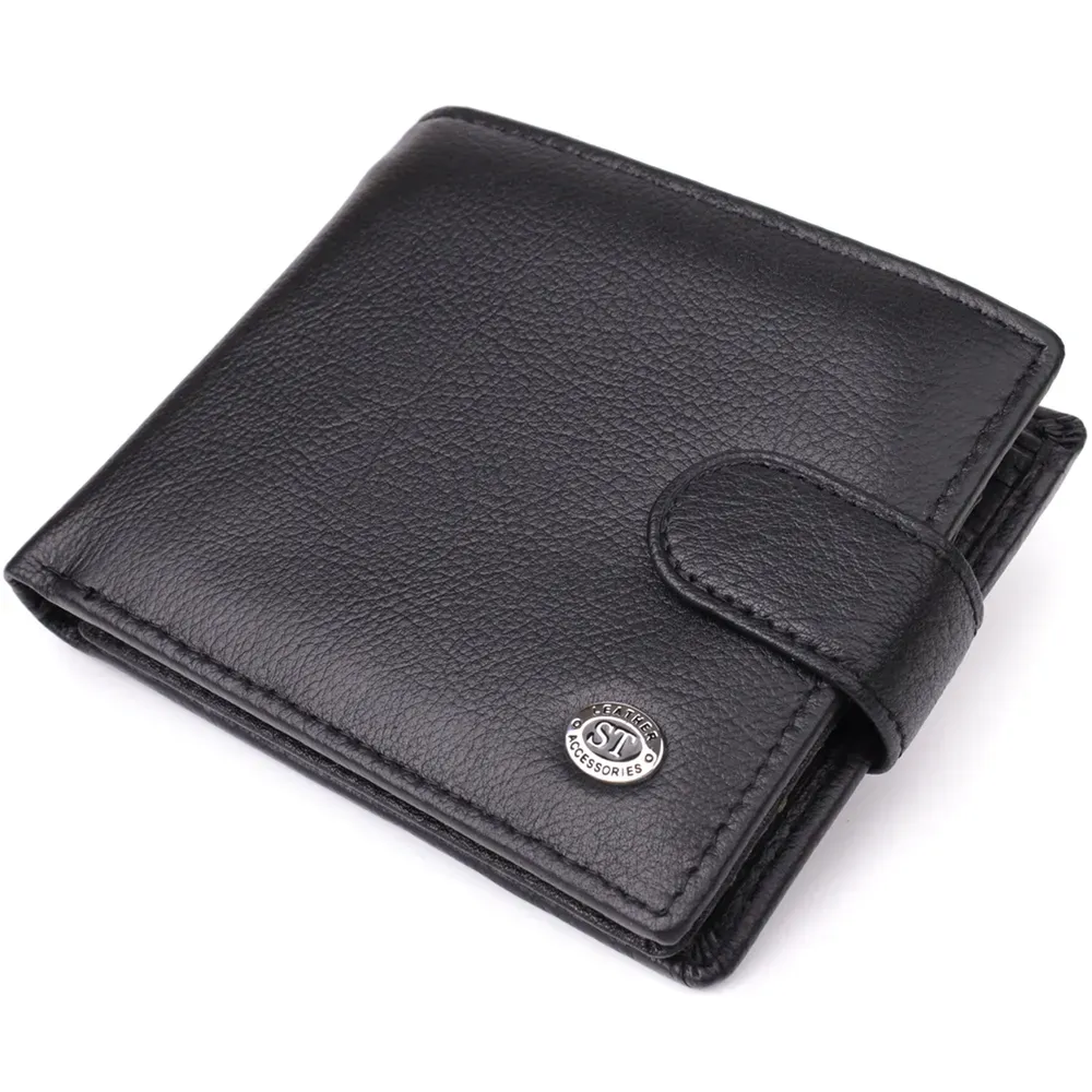 Класичний чоловічий гаманець горизонтального формату із натуральної шкіри ST Leather 23094 Чорний