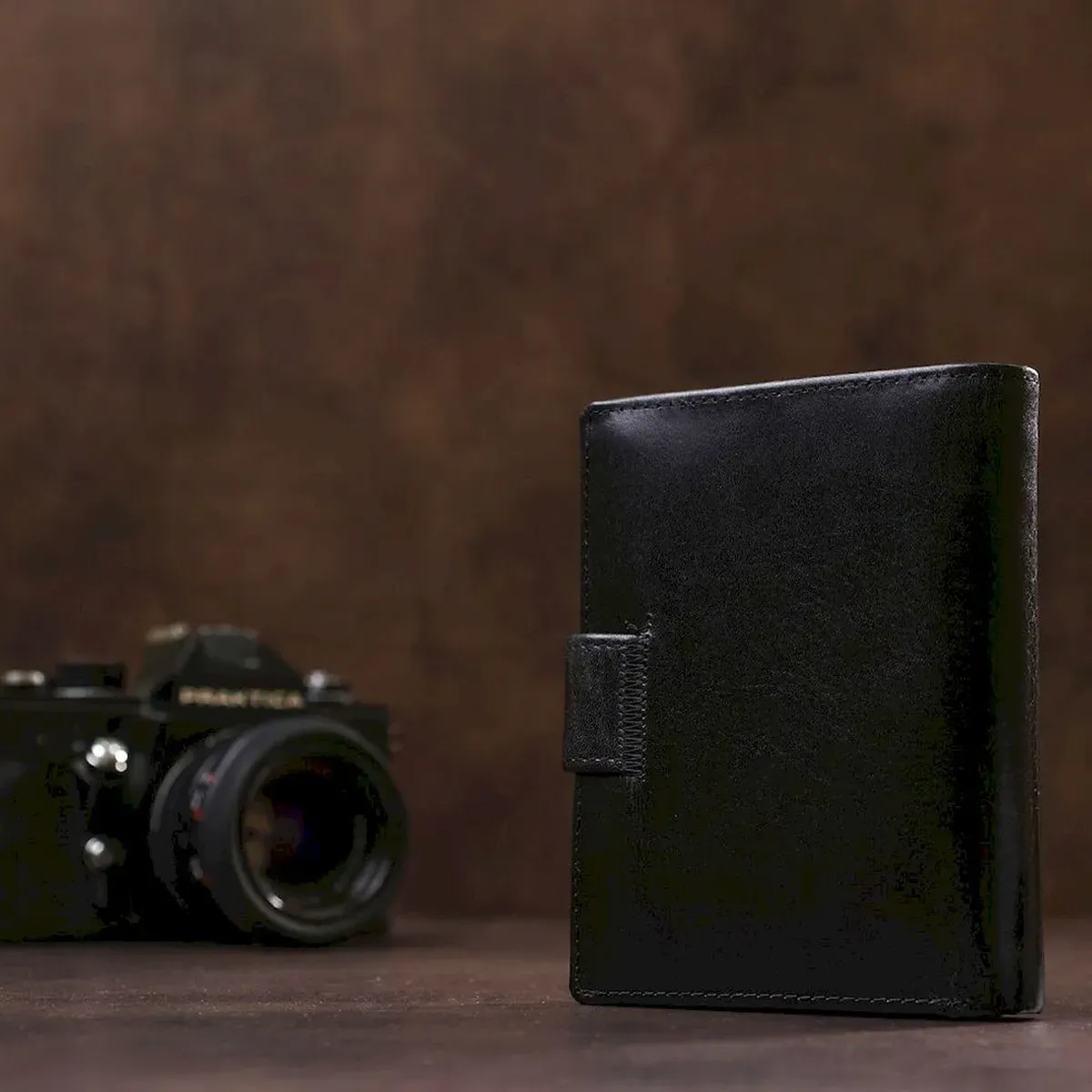 - чоловічий гаманець з натуральної шкіри на кнопці;