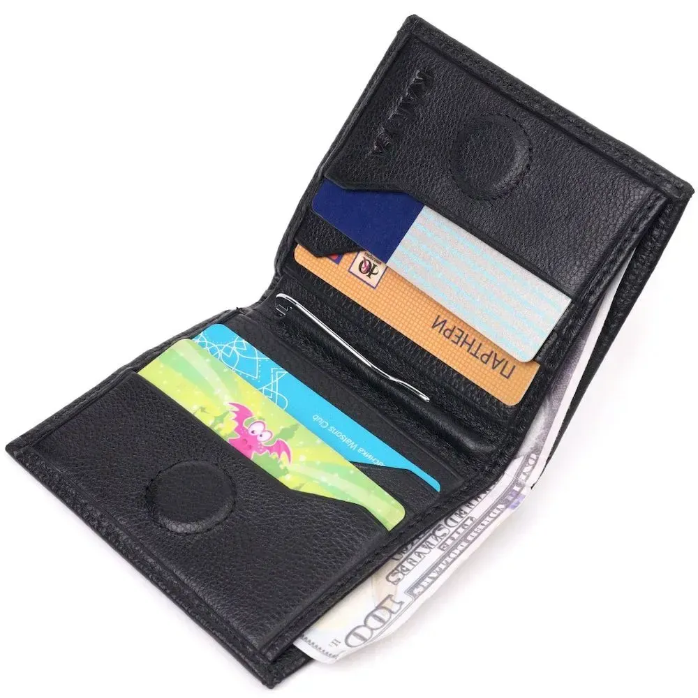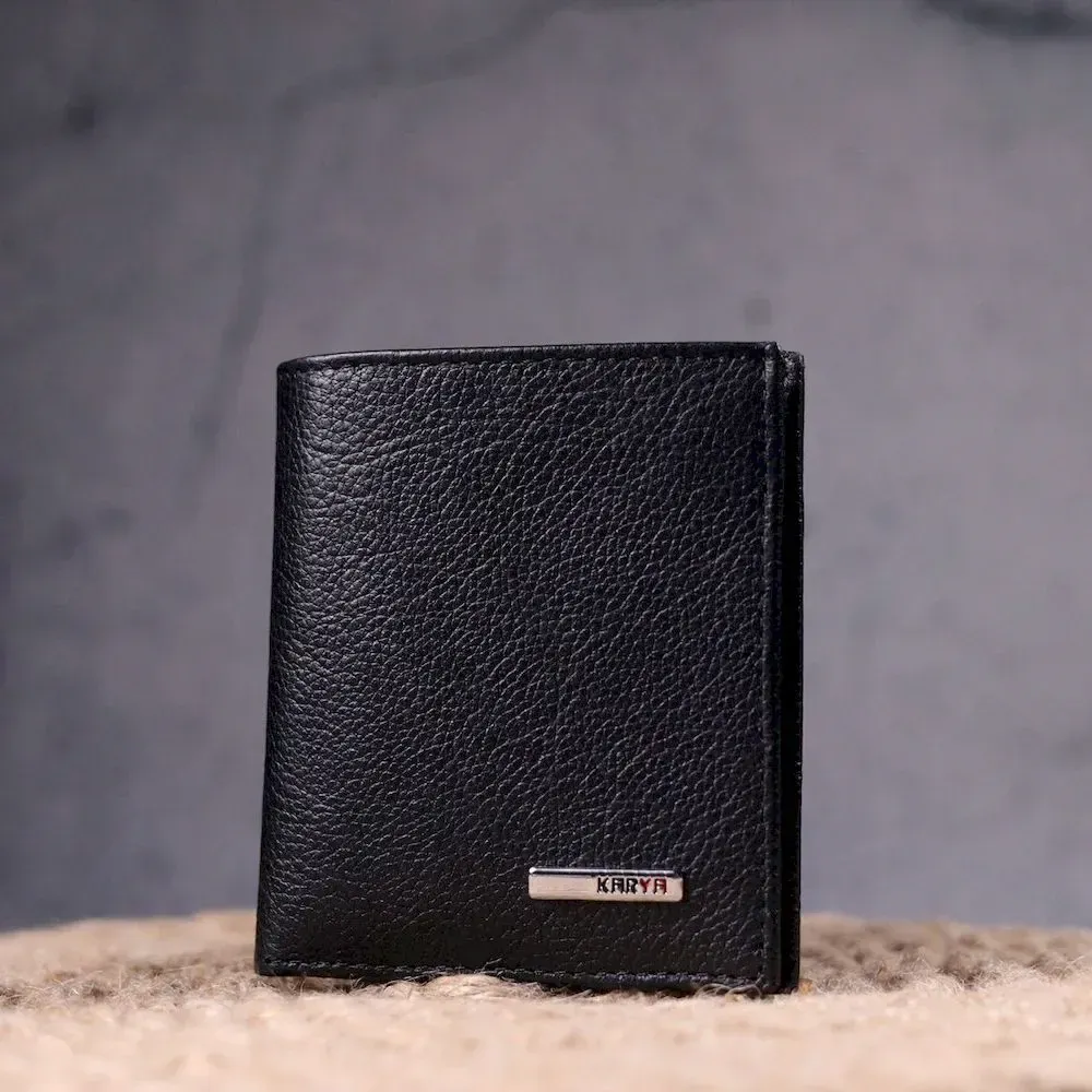 Класичний чоловічий затиск із натуральної шкіри KARYA 21357 Чорний