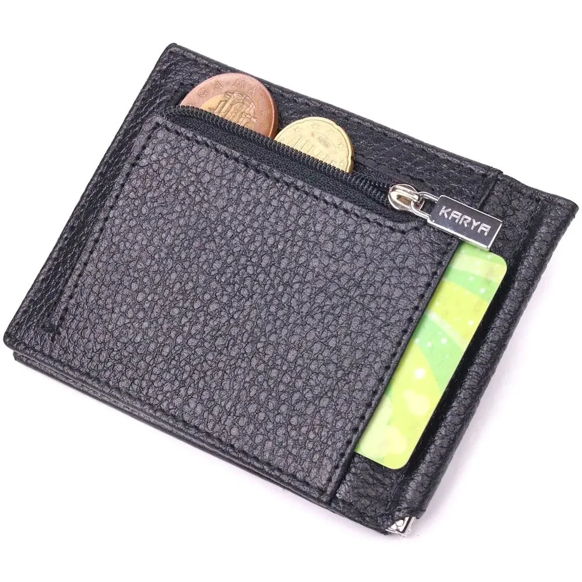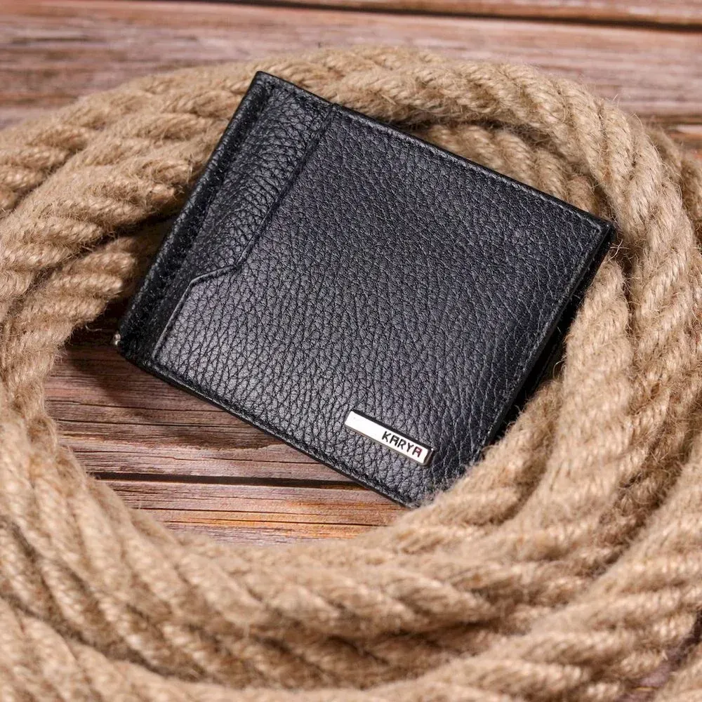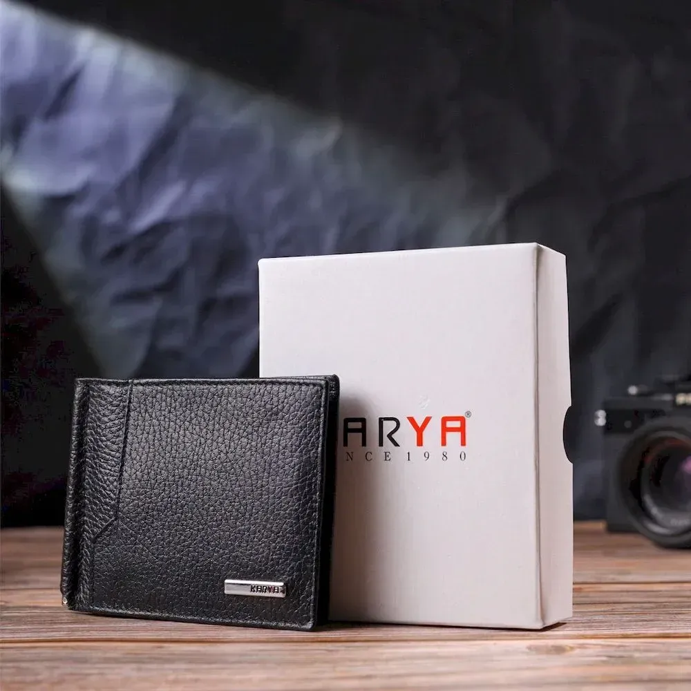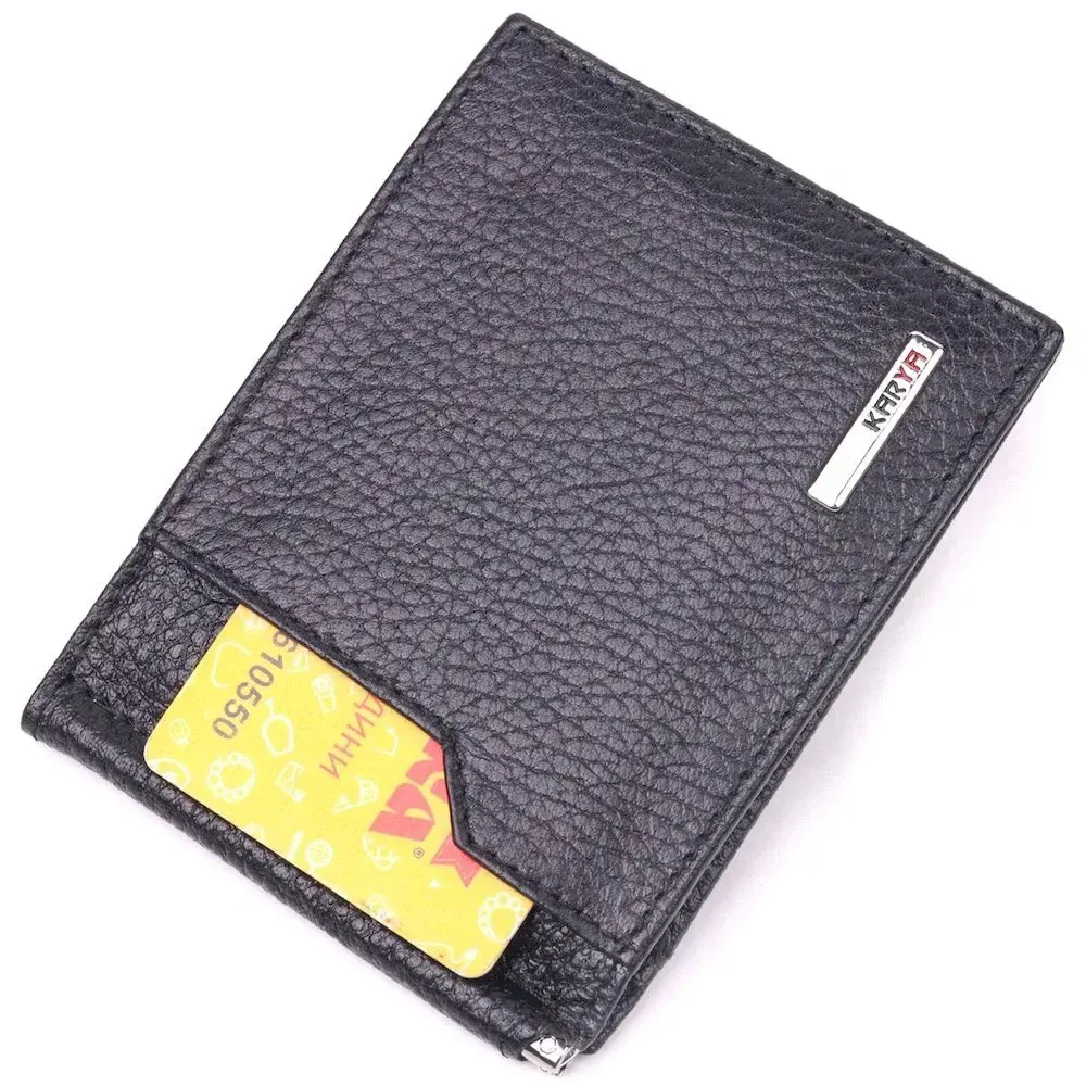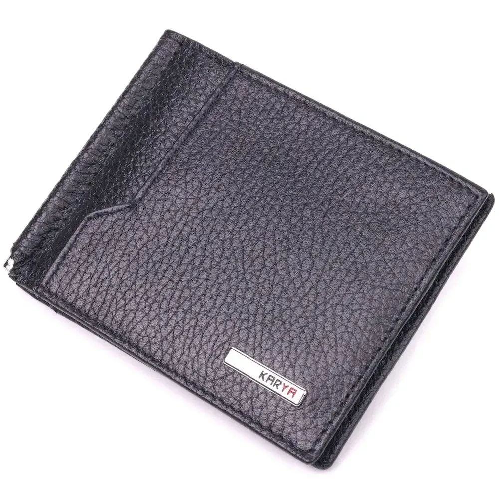 Класичний чоловічий затиск із натуральної зернистої шкіри KARYA 21419 Чорний