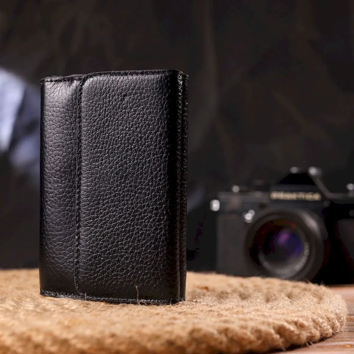 Класичний жіночий гаманець, із натуральної зернистої шкіри флотар. Аксесуар має одне основне відділення, в яке розміщуються купюри всіх номіналів, сім кишень для карток, один з яких під сіточкою, монетниця із зовнішнього боку, а також три приховані кишені. Закривається аксесуар клапаном на кнопку, як і монетниця. Колір фурнітури – срібло. Шкіряний гаманець високої якості завжди буде гідним подарунком для рідних та близьких людей.