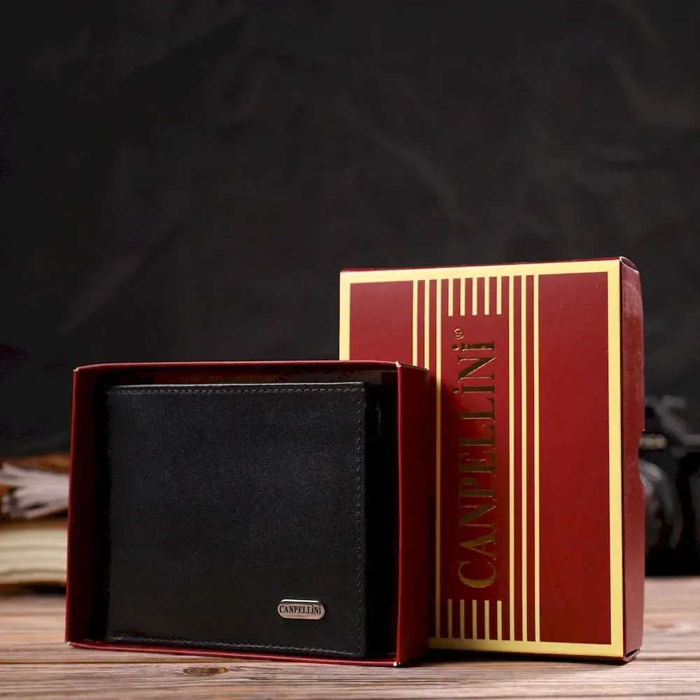 Класичне чоловіче портмоне з натуральної гладкої шкіри CANPELLINI 21786 Чорне