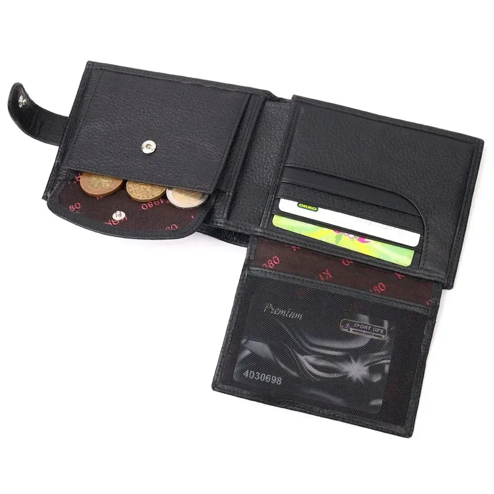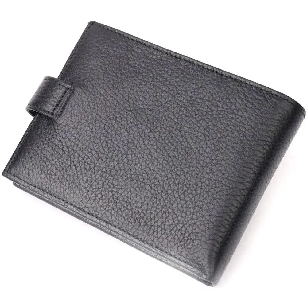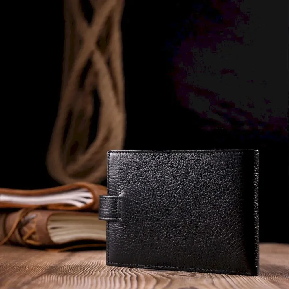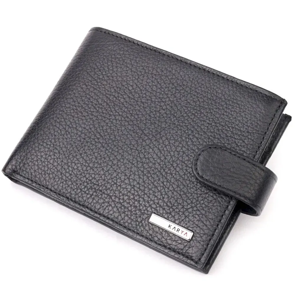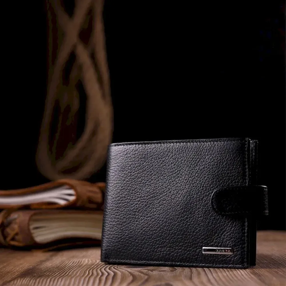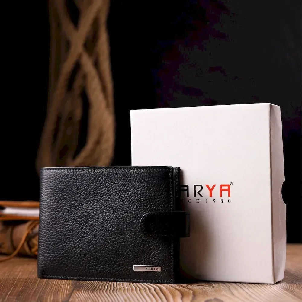Класичний чоловічий портмоне з хлястиком з натуральної шкіри KARYA 21084 Чорний