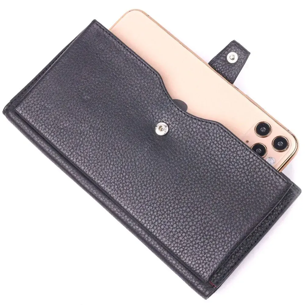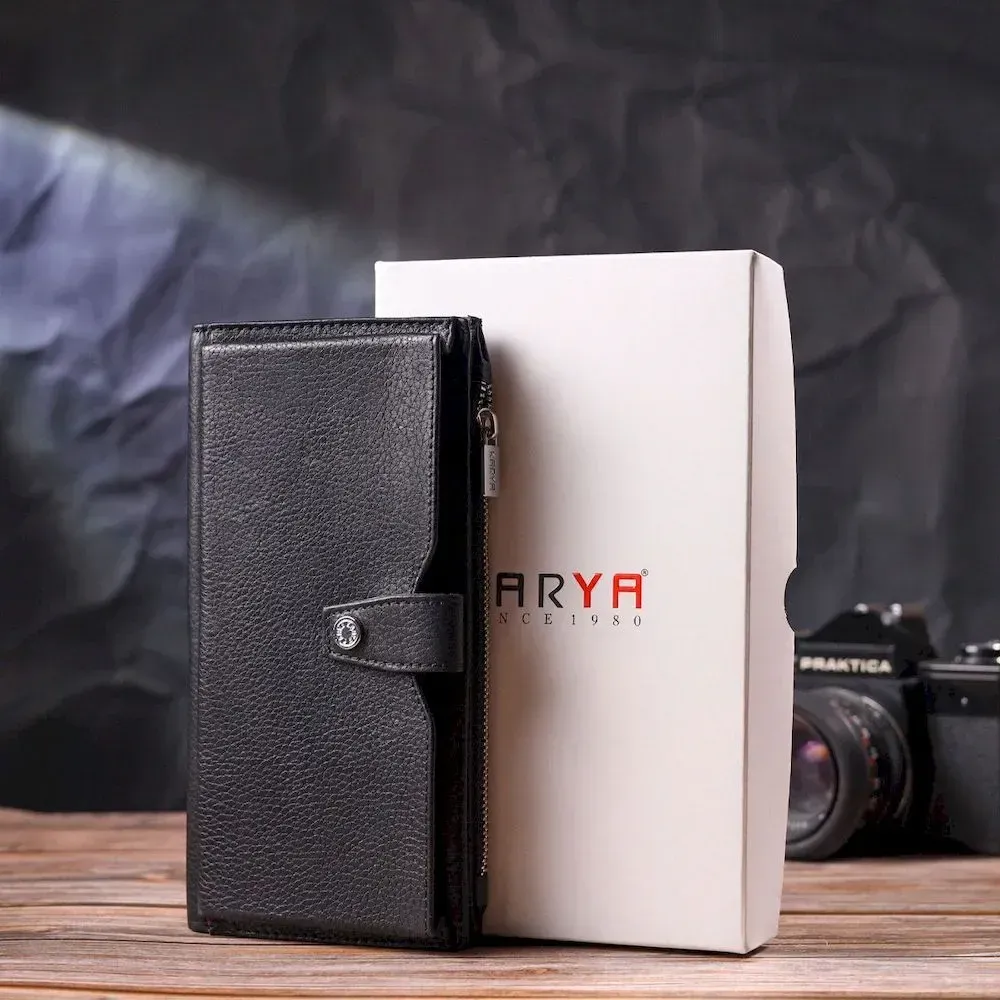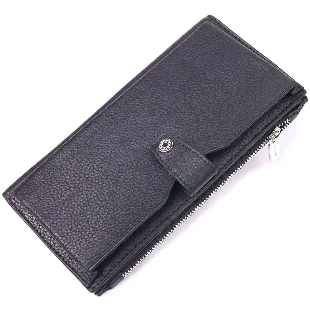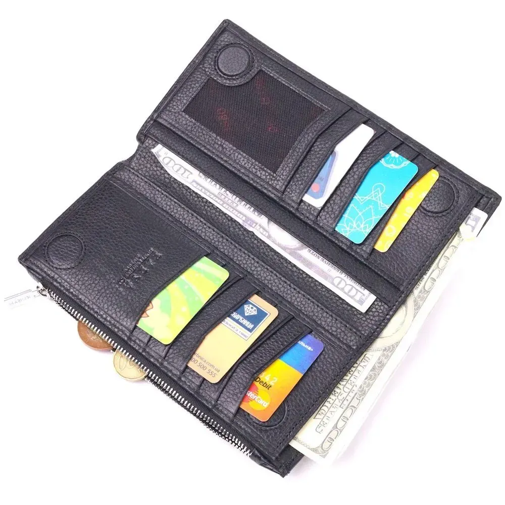 Практичний гаманець із натуральної шкіри в класичному чорному кольорі. Гаманець складається з одного глибокого відділення, чотирьох прилеглих кишень, дванадцяти осередків для карт, відділення під сіточкою, відділення на блискавці зовні та відділення для телефону, що закривається хлястиком на кнопку. У виробах цього елітного турецького бренду завжди використовуються найякісніші шкіряні матеріали та фурнітура. Аксесуар упакований у фірмову коробочку. Шкіряний виріб завжди буде чудовим подарунком для будь-якого чоловіка.