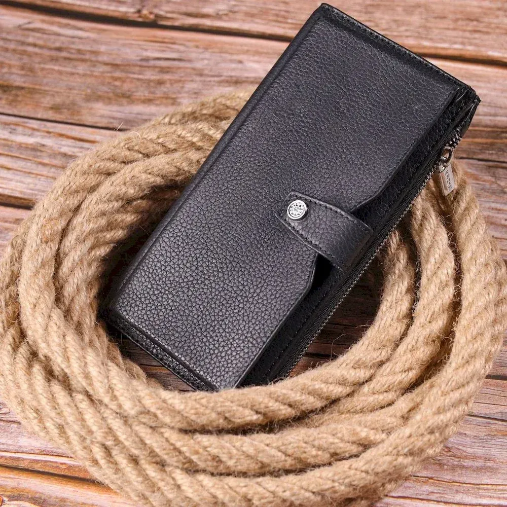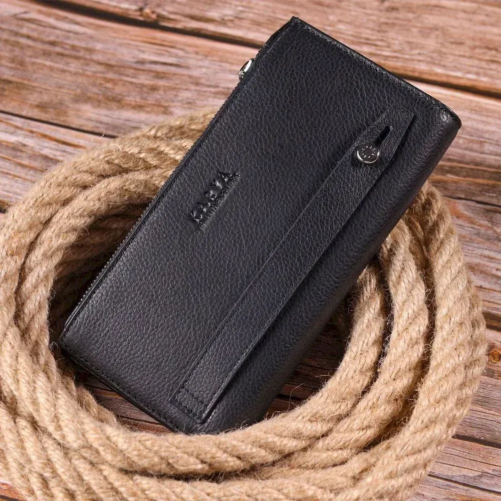 Класичний чоловічий вертикальний портмоне з натуральної шкіри KARYA 21422 Чорний
