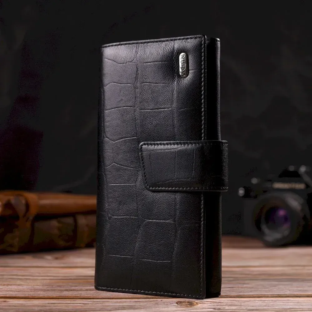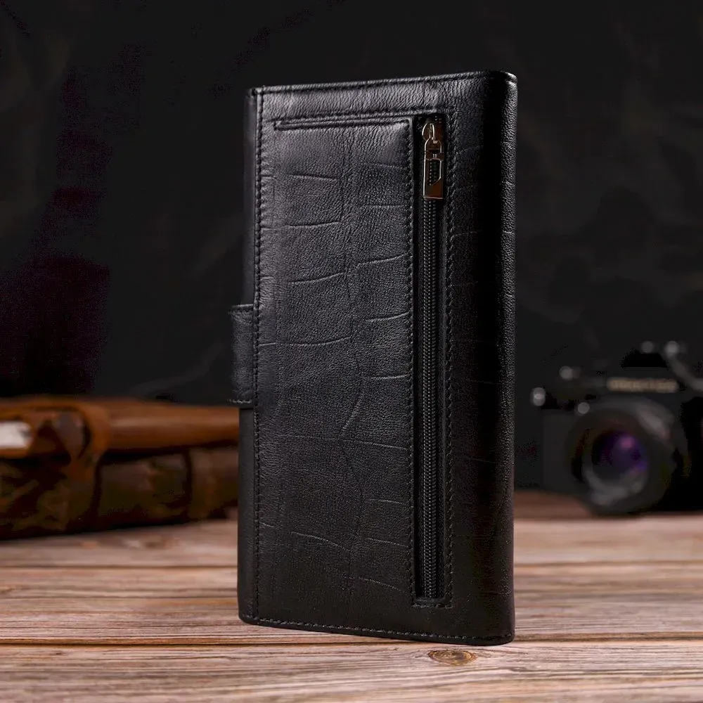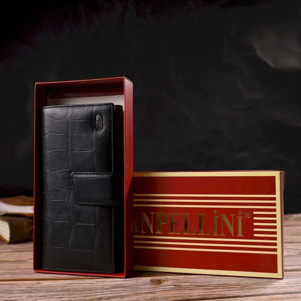 Класичний вертикальний чоловічий портмоне з натуральної шкіри з тисненням CANPELLINI 21836 Чорний