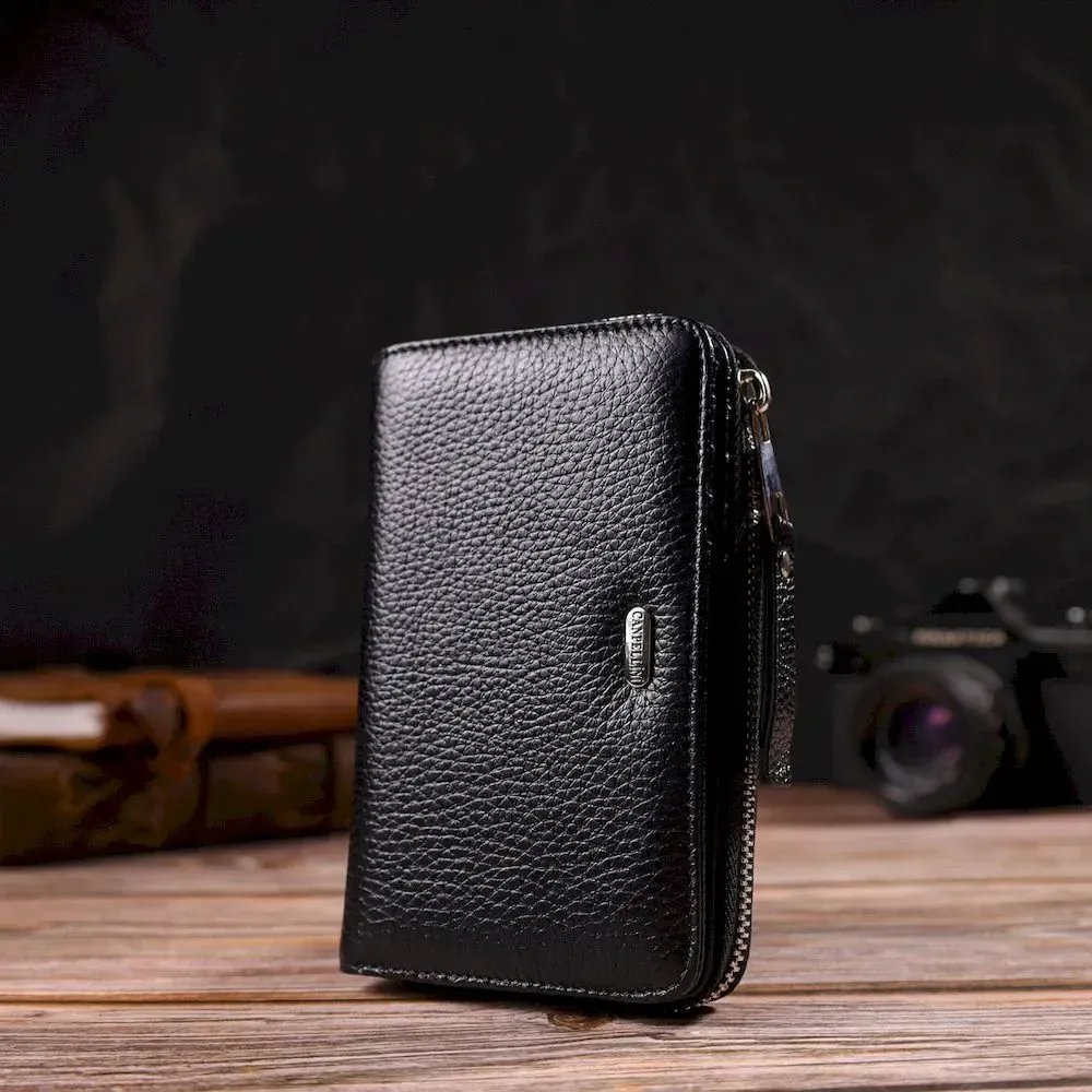 Класичне жіноче портмоне середнього розміру з натуральної шкіри CANPELLINI 21912 Чорне