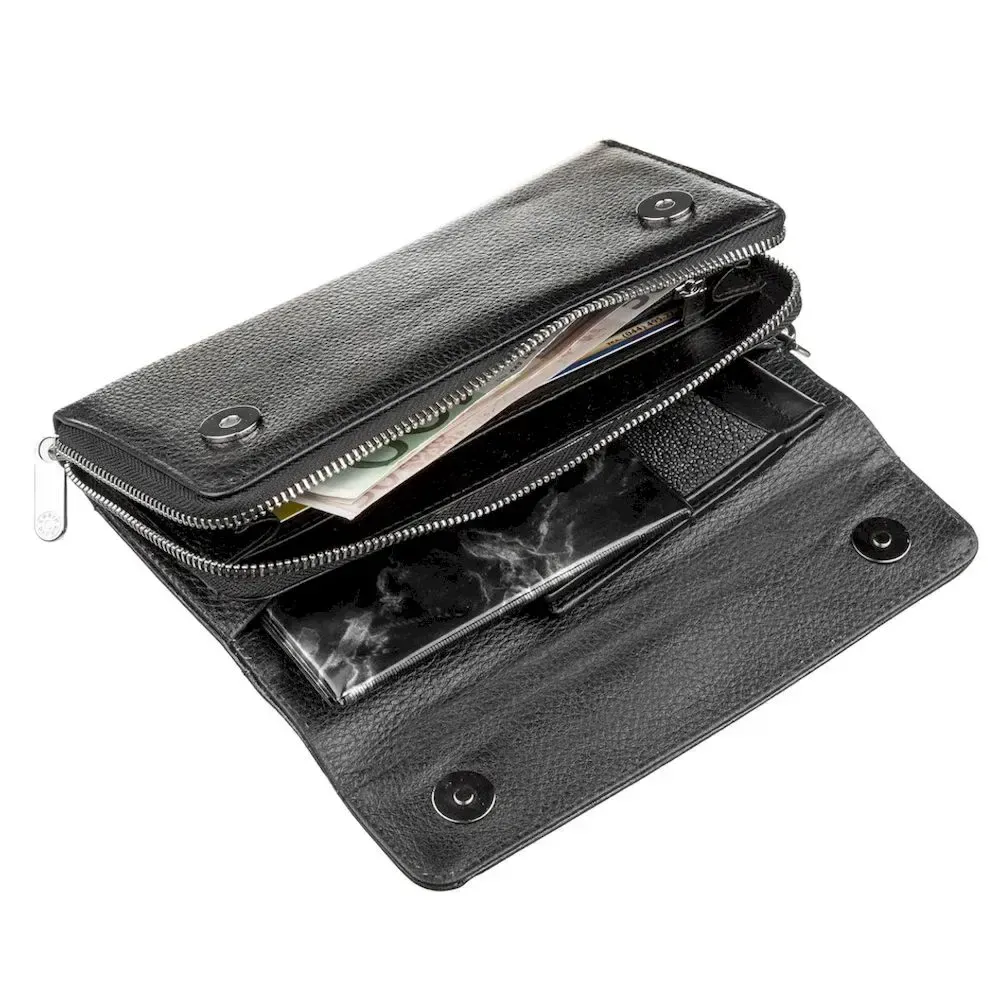 Модель виконана з натуральної фактурної шкіри Флотар високої якості. Має міцну металеву фурнітуру. Усередині прошита нитками чорного кольору. Виконана у класичному витриманому стилі. Зручно сидить у руці. В аксесуар легко поміститься ваш смартфон, ключі, документи, цигарки та гроші. Є шкіряний ремінь-петля на зап'ястя. Якість носіння цієї моделі вас приємно здивує. Відмінно підійде щодня. Може бути чудовим подарунком будь-якому чоловікові.