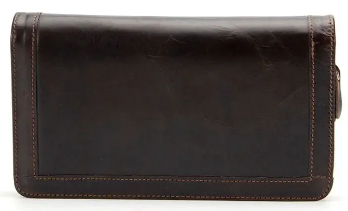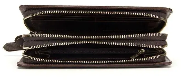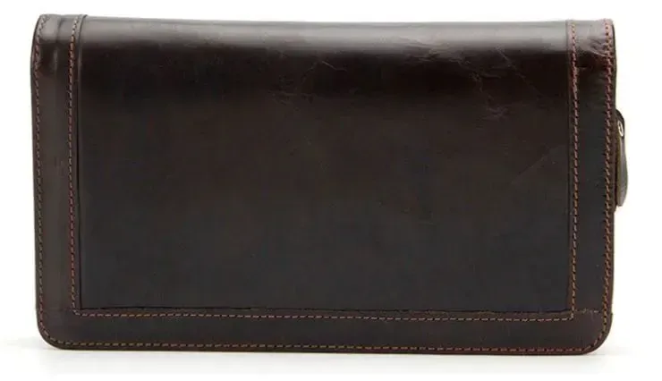 Гарний клатч виготовлений у класичному стилі. Аксесуар прошитий по краях коричневою ниткою. Фурнітура в золотистому аксесуарі. У клатчі можна носити свій телефон. Аксесуар приємний на дотик. Модель не вибаглива у догляді і гасає досить довго. Хороший варіант взяти із собою все необхідне без сумки. Аксесуар упакований у тканинний чохол. Може бути чудовим подарунком для близької людини.
