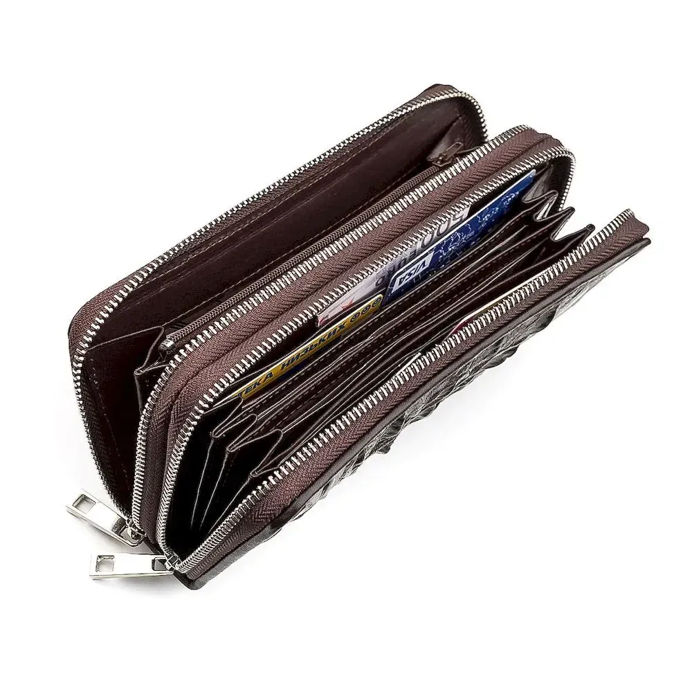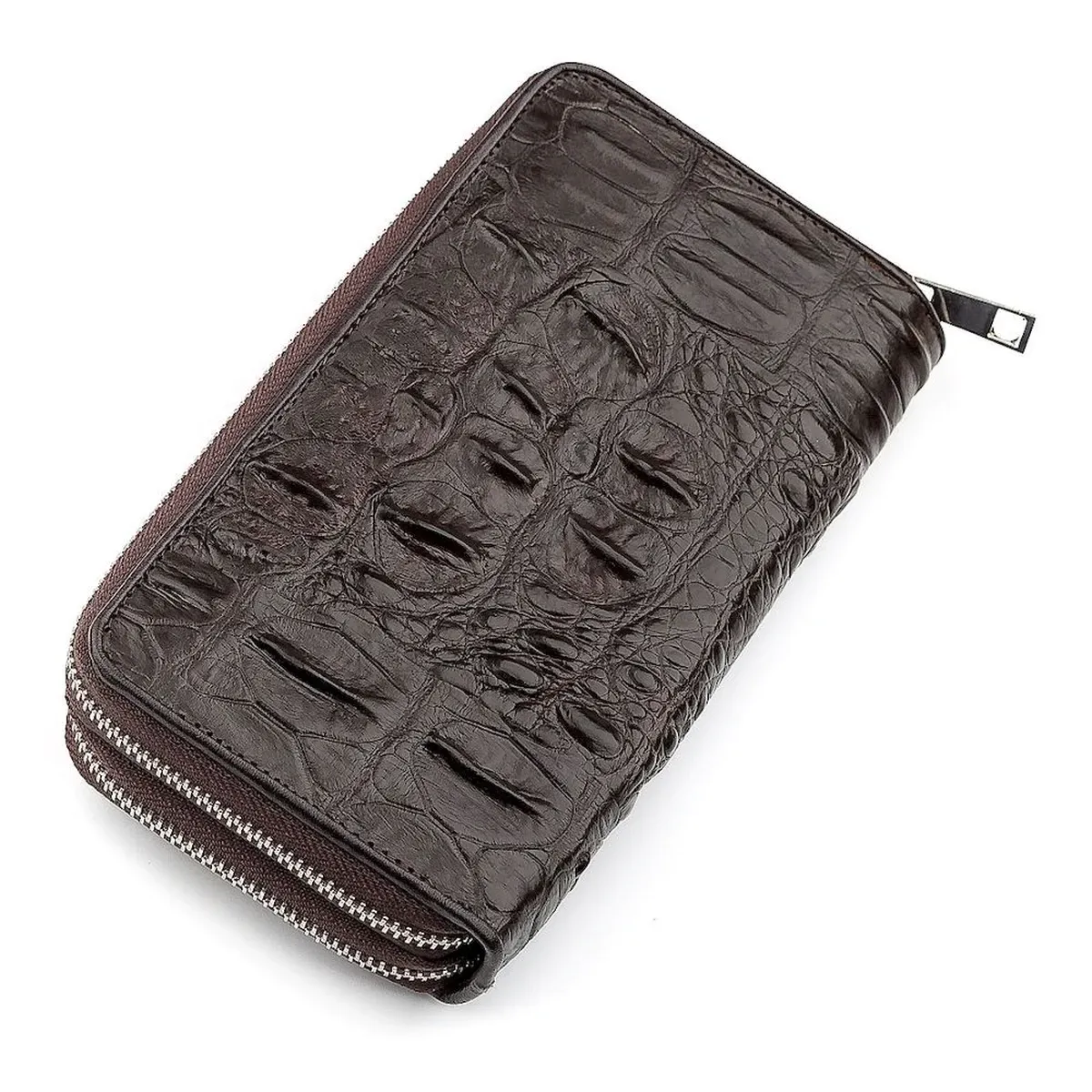 Клатч на дві блискавки CROCODILE LEATHER 18271 із натуральної шкіри крокодила Коричневий