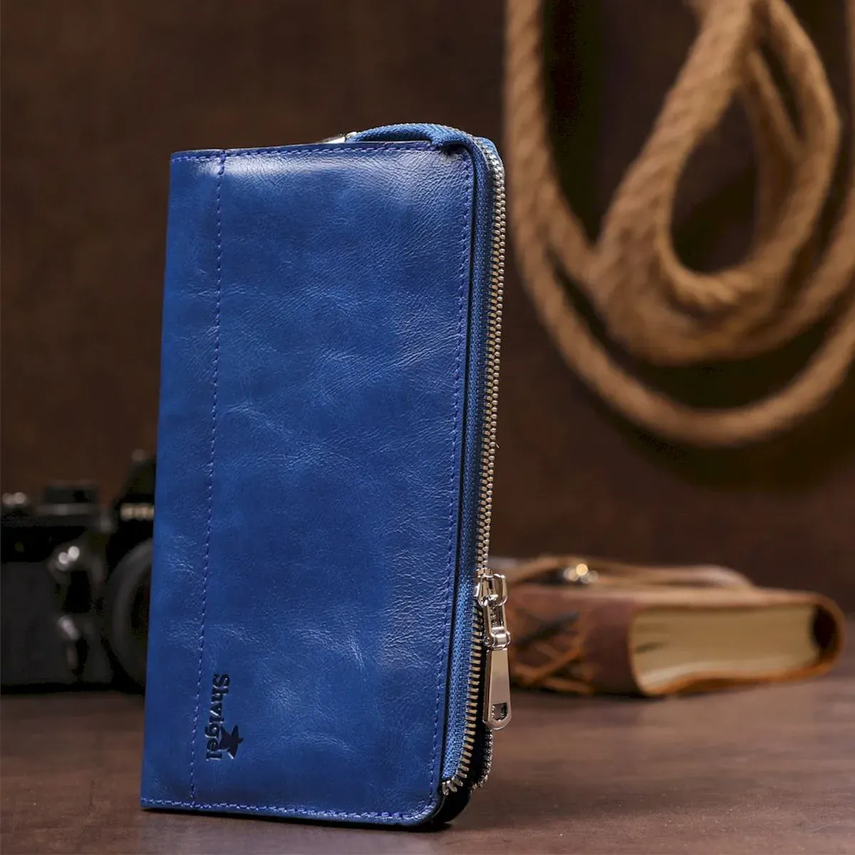 Клатч унісекс шкіряний глянцевий SHVIGEL 16183 Синій
