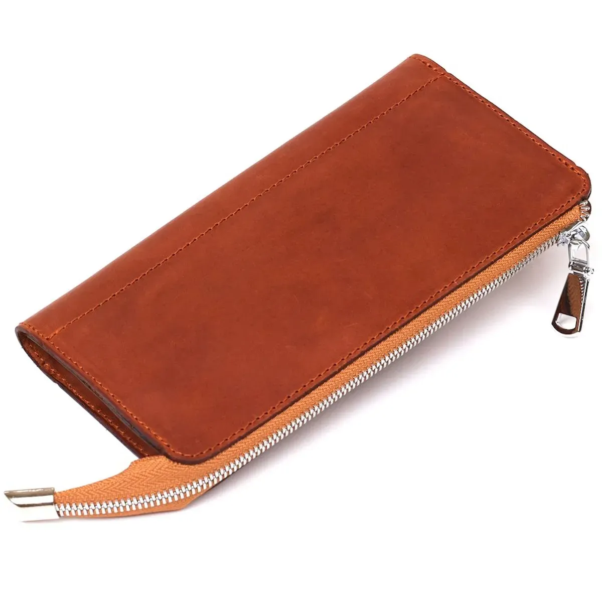 Добротний клатч із натуральної шкіри Crazy horse. Даний тип шкіри відрізняється своїм ефектом старовини, за який його так люблять клієнти. Під час експлуатації на вінтажній шкірі з'являються подряпини та потертості, які створюють улюблений ефект. Аксесуар виглядає солідно та дорого. Ви можете замінити клатч барсетку. Модель зручно лежить у руці. Доповнено виріб міцною фурнітурою сріблястого кольору. Застібається аксесуар на блискавку. Такий клатч стане бажаним подарунком для його власника. Виріб підійде як для чоловіка, так і для жінки.