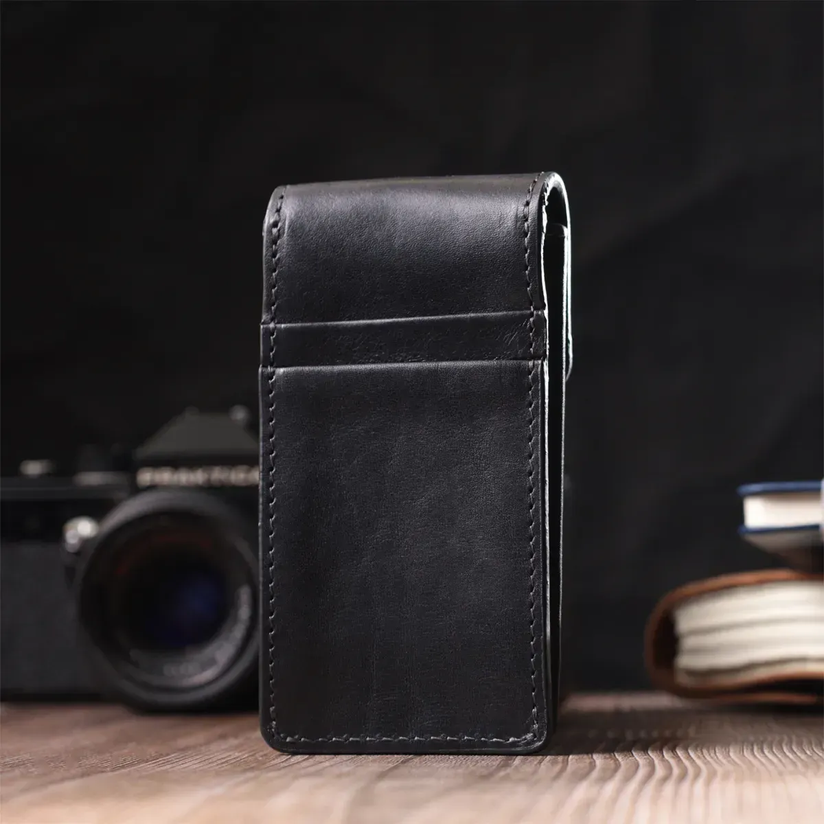 Ключниця у вигляді футляра з натуральної високоякісної шкіри українського виробництва. Має насичений чорний колір, благородний блиск та срібну фурнітуру. Ключниця це просто незамінний аксесуар для всіх, хто дбайливо ставиться до вмісту своєї сумки, адже вони сприяють порядку та збереженню Ваших речей. Запакована ключниця у красивий повстяний чохол. Якісний шкіряний аксесуар це завжди чудова ідея для подарунка рідним та близьким людям.