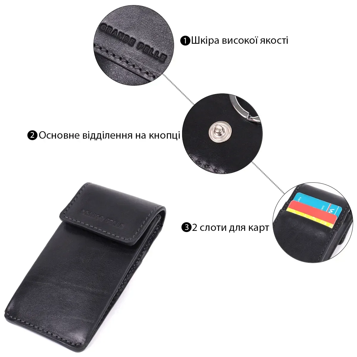Ключниця футляр із натуральної шкіри GRANDE PELLE 22568 Чорний