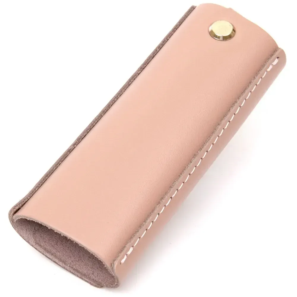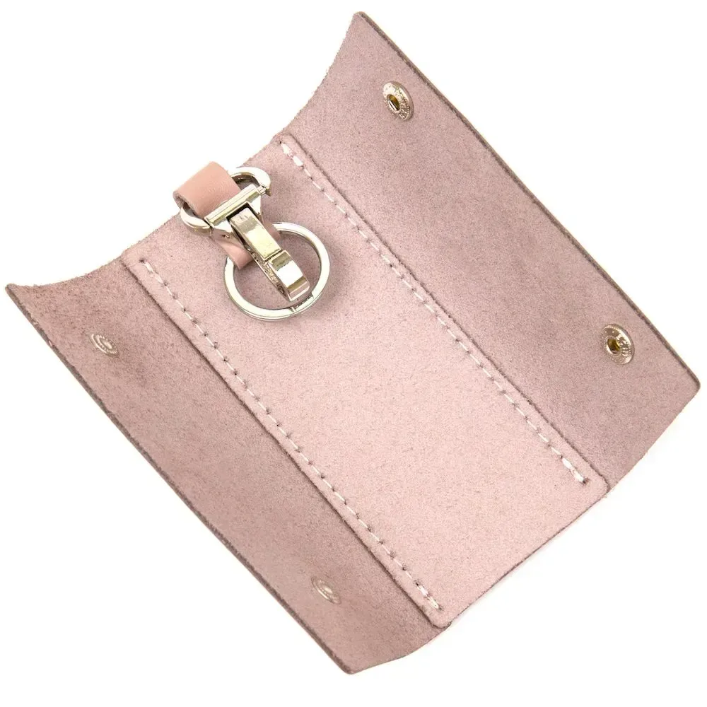 Красива блідо-рожева ключниця з натуральної добротної шкіри високого класу. Закривається на металеві кнопки, всередині розташувалося надійне кільце для ключів та карабін, щоб мати можливість причепити ключницю до сумки, наприклад. Цей аксесуар як подарунок обов'язково порадує Вашу близьку людину.