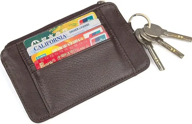 Оригінальна чоловіча шкіряна ключниця - Холдер коричневого кольору. Ключниця-холдер надійно прошита темно-коричневою ниткою. Кільце, яке об'єднує та фіксує ключі в одному місці, для зменшення ризику їх втрати, надійно пришите із зовнішнього боку. Аксесуар зручно тримати в руці, але в передню кишеню джинсів він також поміститься. Виріб упакований в текстильний мішок пилу білого кольору. -8 відділень для пластикових карток зовні ;