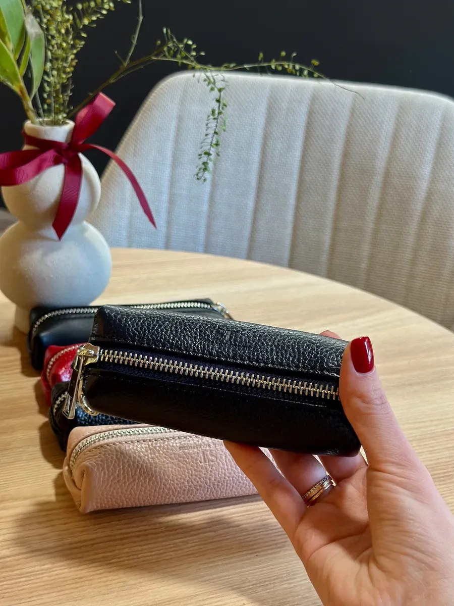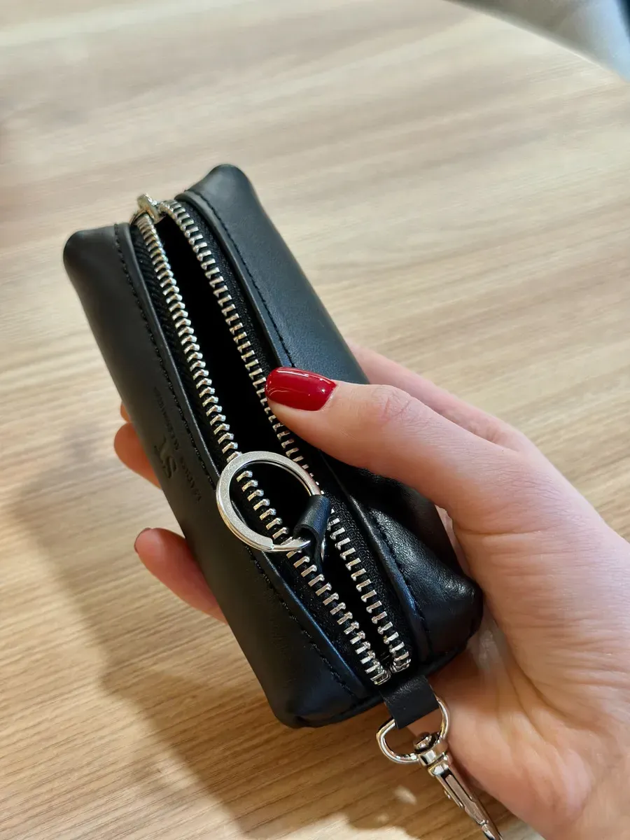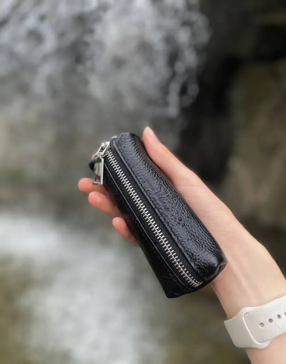 Ключниця виконана з натуральної шкіри, тому дуже практична в експлуатації. Аксесуар можна використовувати під 6 ключів, а також банкнот. У двох великих відділеннях зручно носити гроші - одне з них на блискавці. Три прилеглі кишеньки дозволяють зберігати різні дрібниці. У згорнутому стані виріб займає мало місця. З такою багатофункціональною ключницею все що потрібно - завжди під рукою.