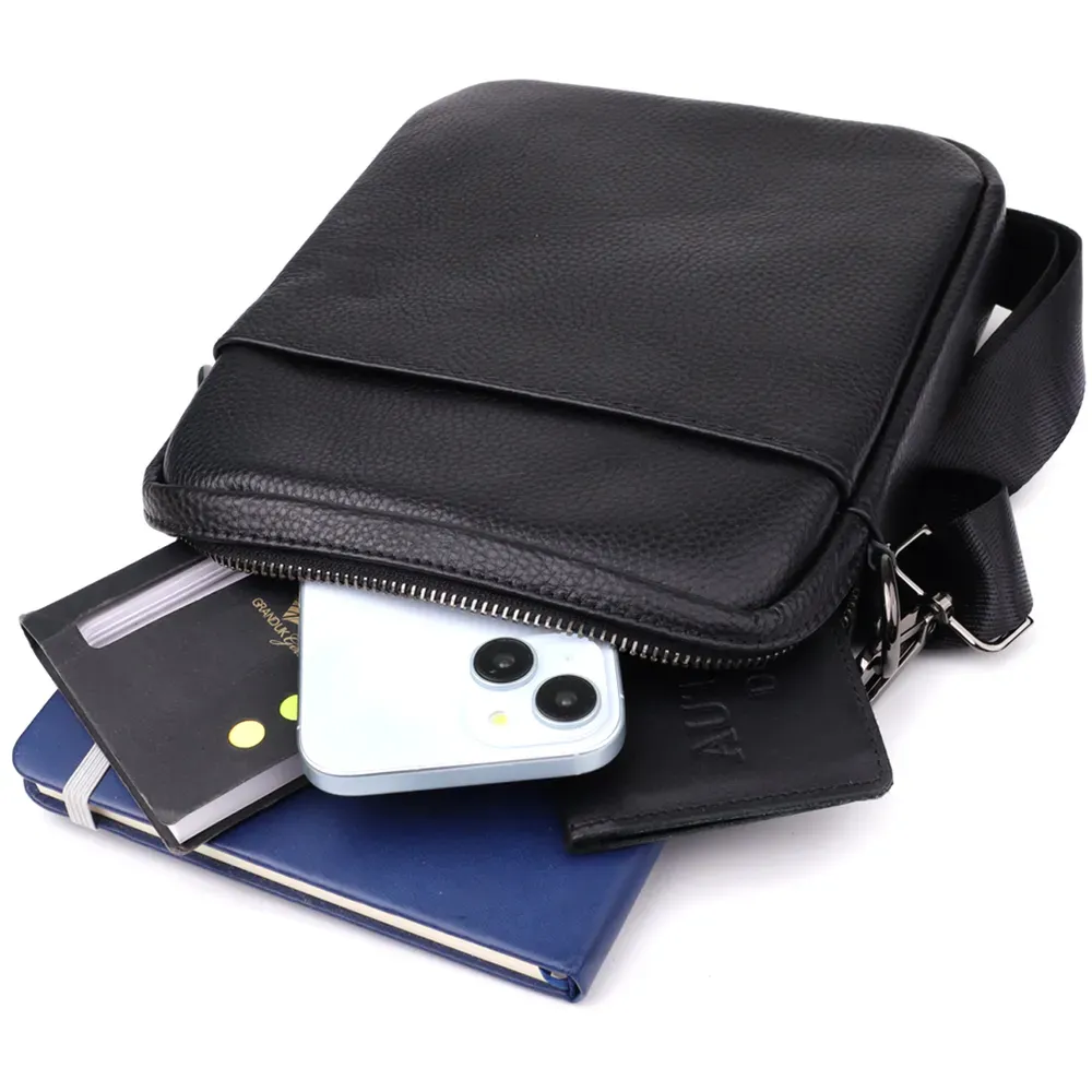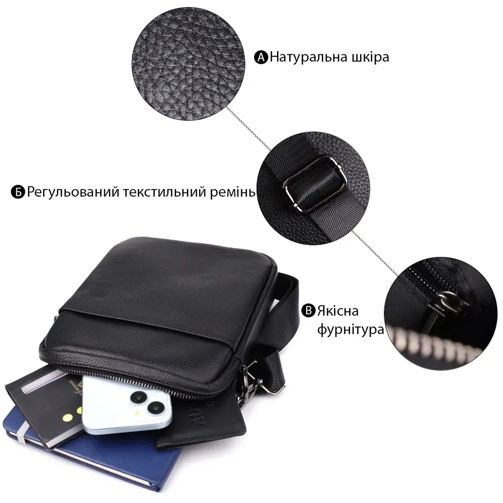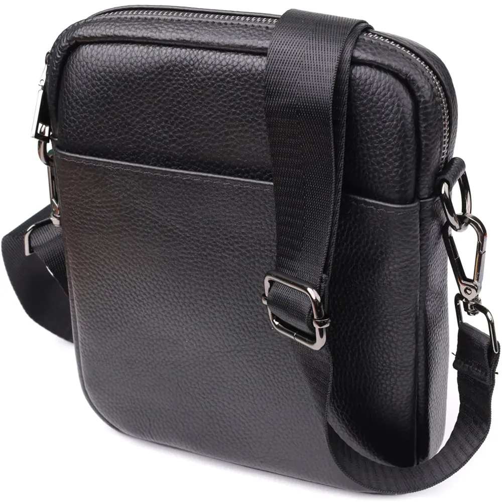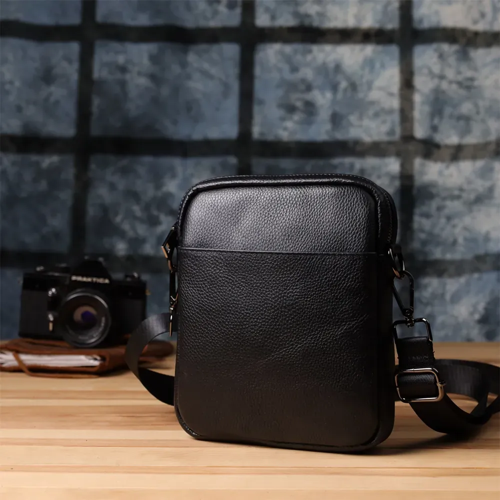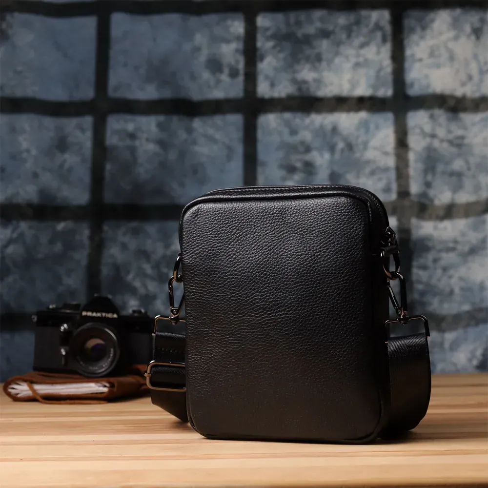 Компактна чоловіча сумка на плече з натуральної шкіри Vintage 23021 Чорний
