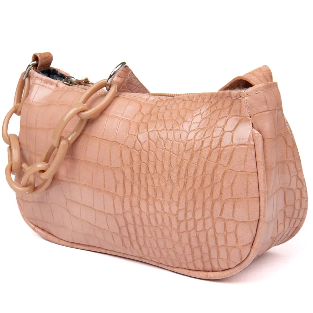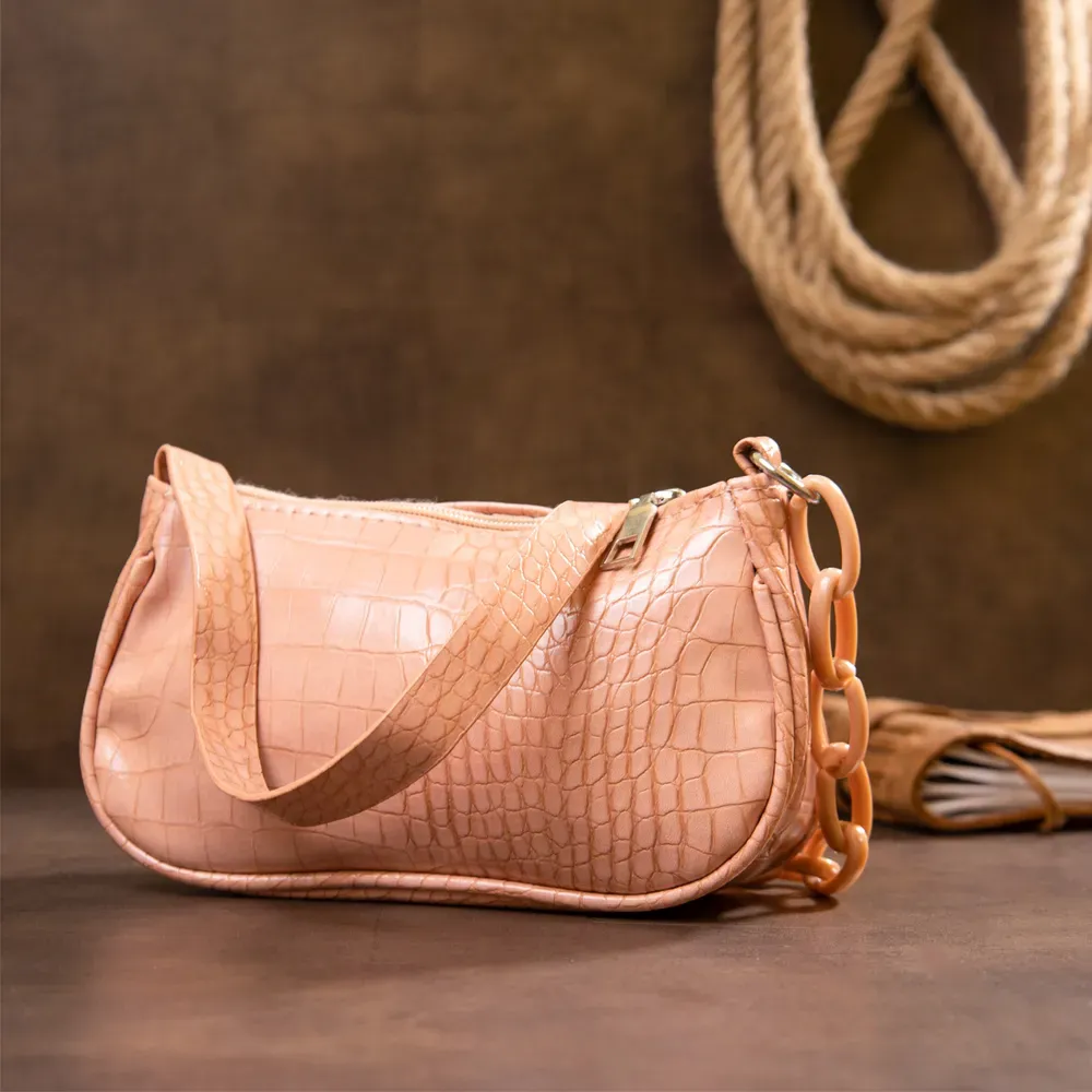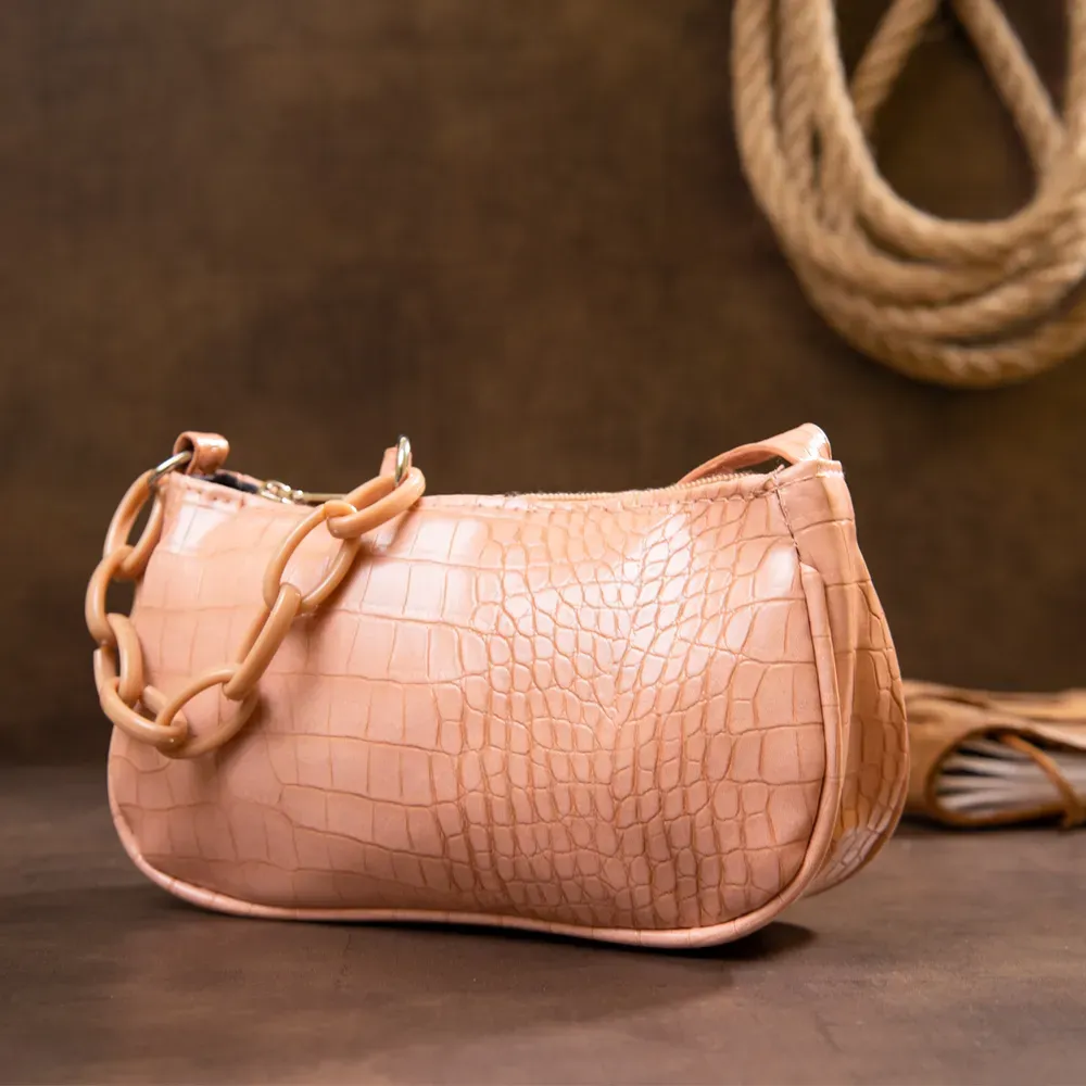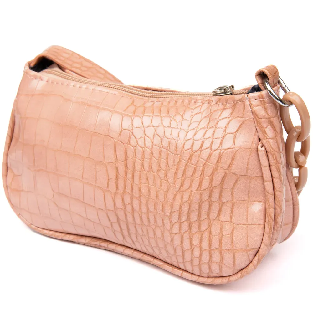 Компактна сумка-багет з шкірозамінника під екзотику Vintage 14926 Рожева