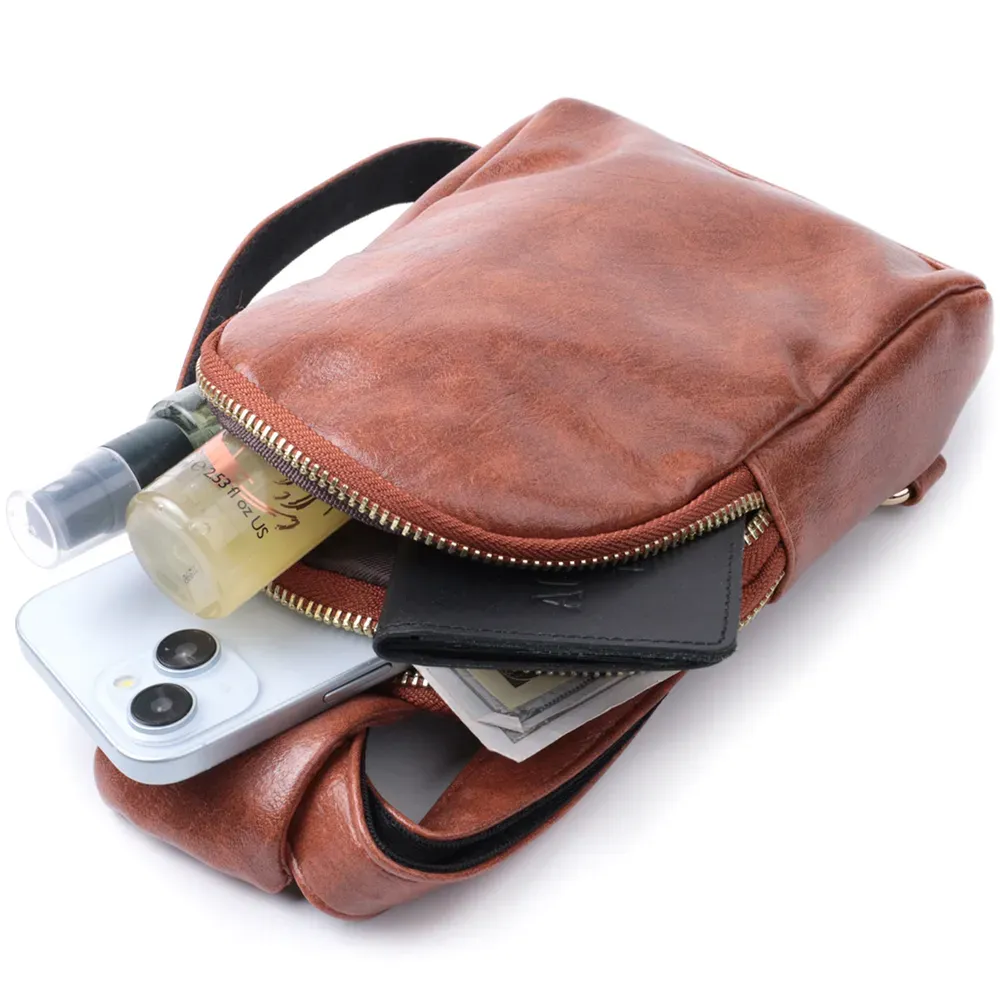 Компактна жіноча сумка через плече на два відділення з екошкіри Vintage 22783 Коричневий