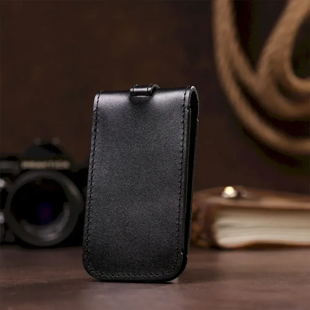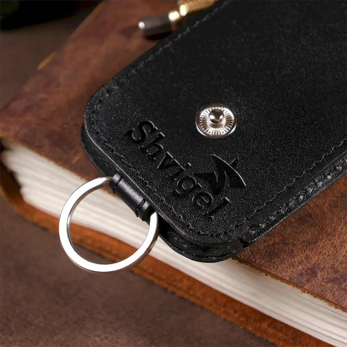 Компактна шкіряна ключниця з хлястиком SHVIGEL 13988 Чорна