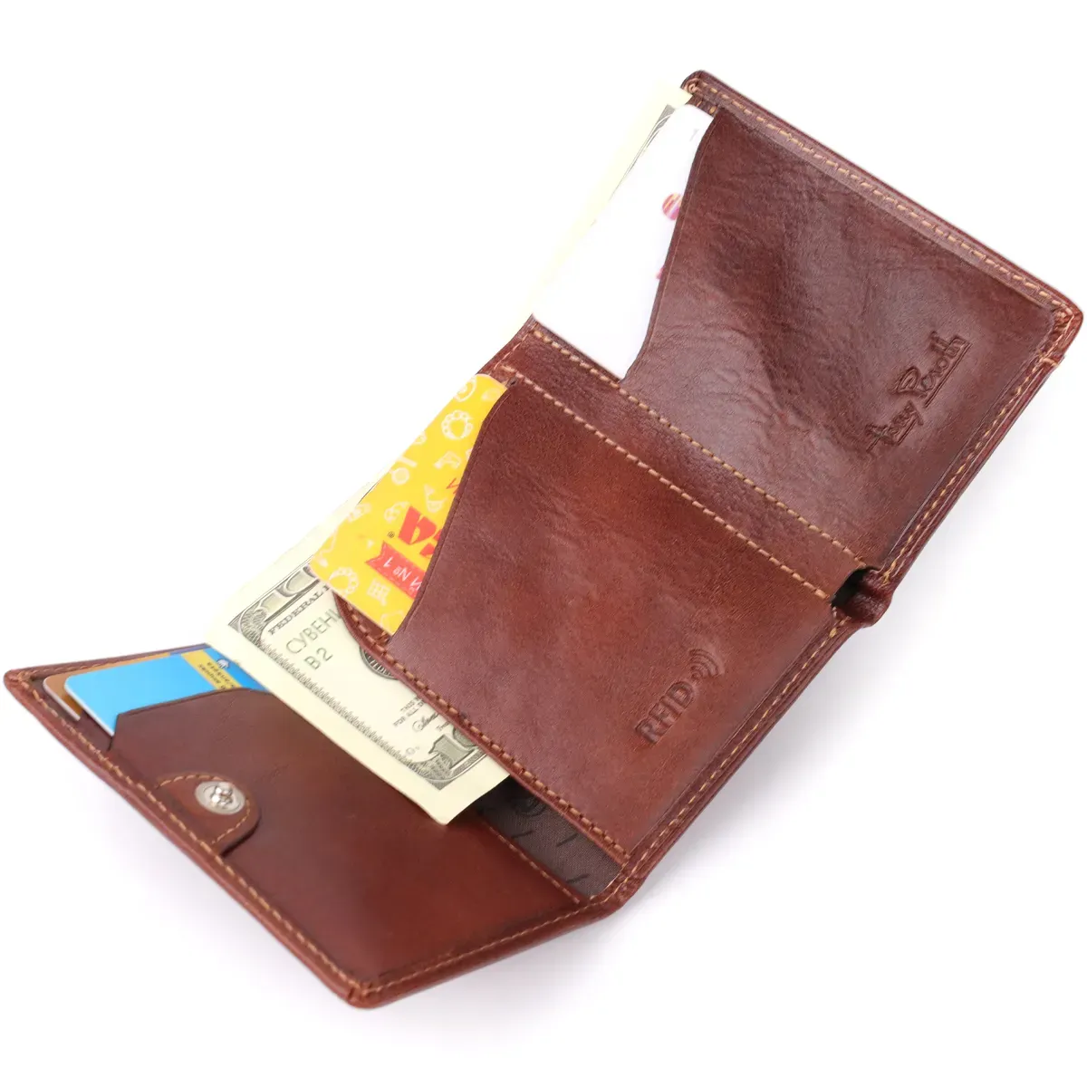 Компактне портмоне Tony Perotti у три додавання поєднує елегантність, практичність та сучасний захист даних. Натуральна шкіра та міцна фурнітура забезпечують довговічність, а RFID-підкладка захищає ваші карти від несанкціонованого зчитування. Фірмове тиснення підкреслює преміальний стиль та приналежність виробу до бренду.