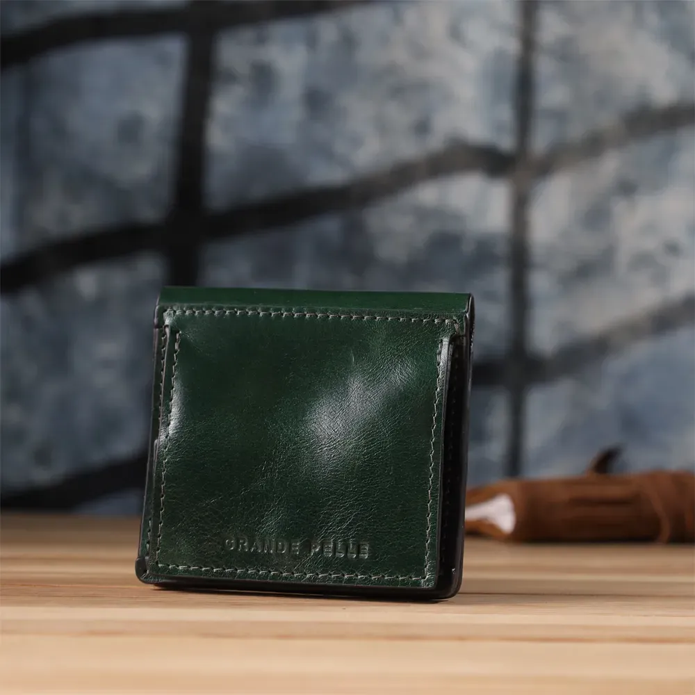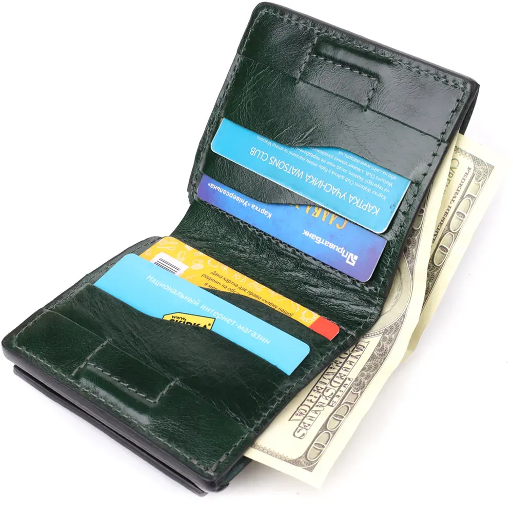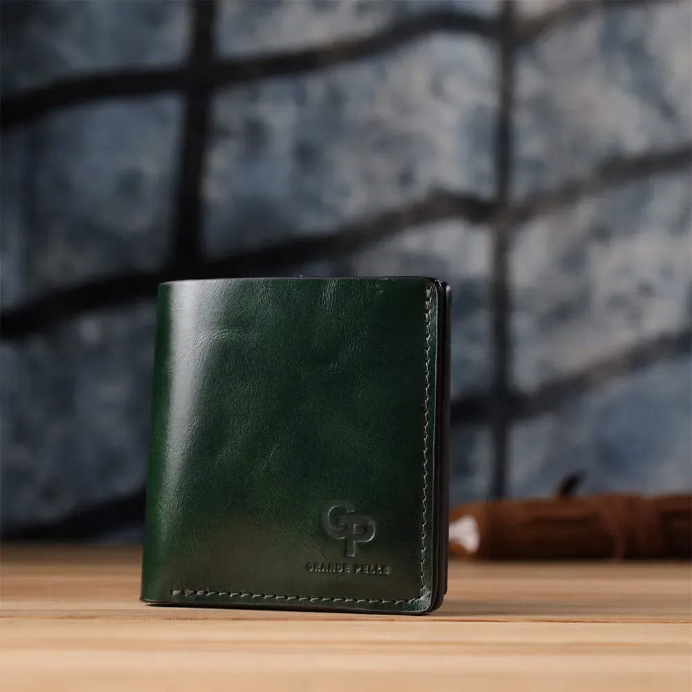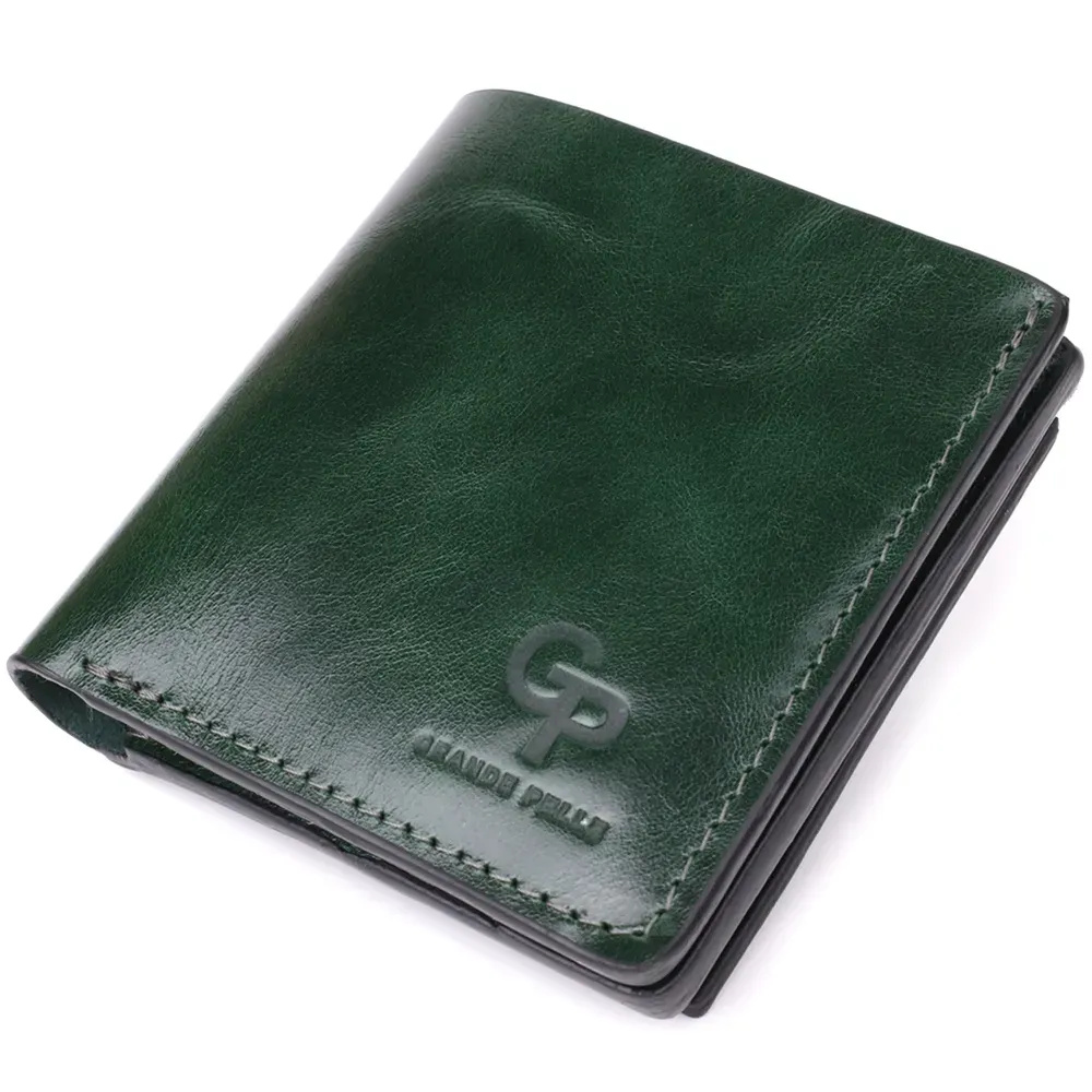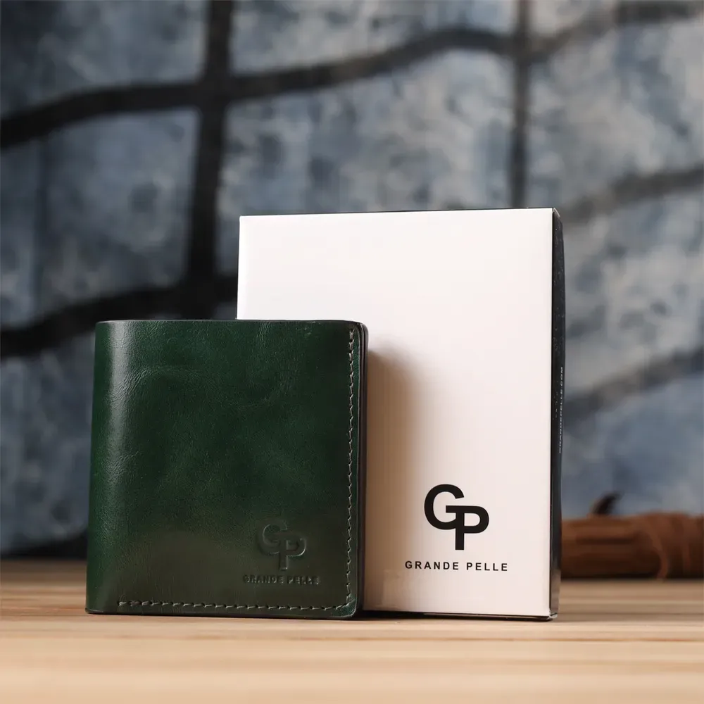 Компактний гаманець у дві складення з натуральної гладкої шкіри GRANDE PELLE 22946 Зелений