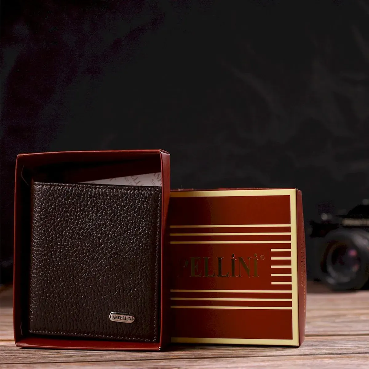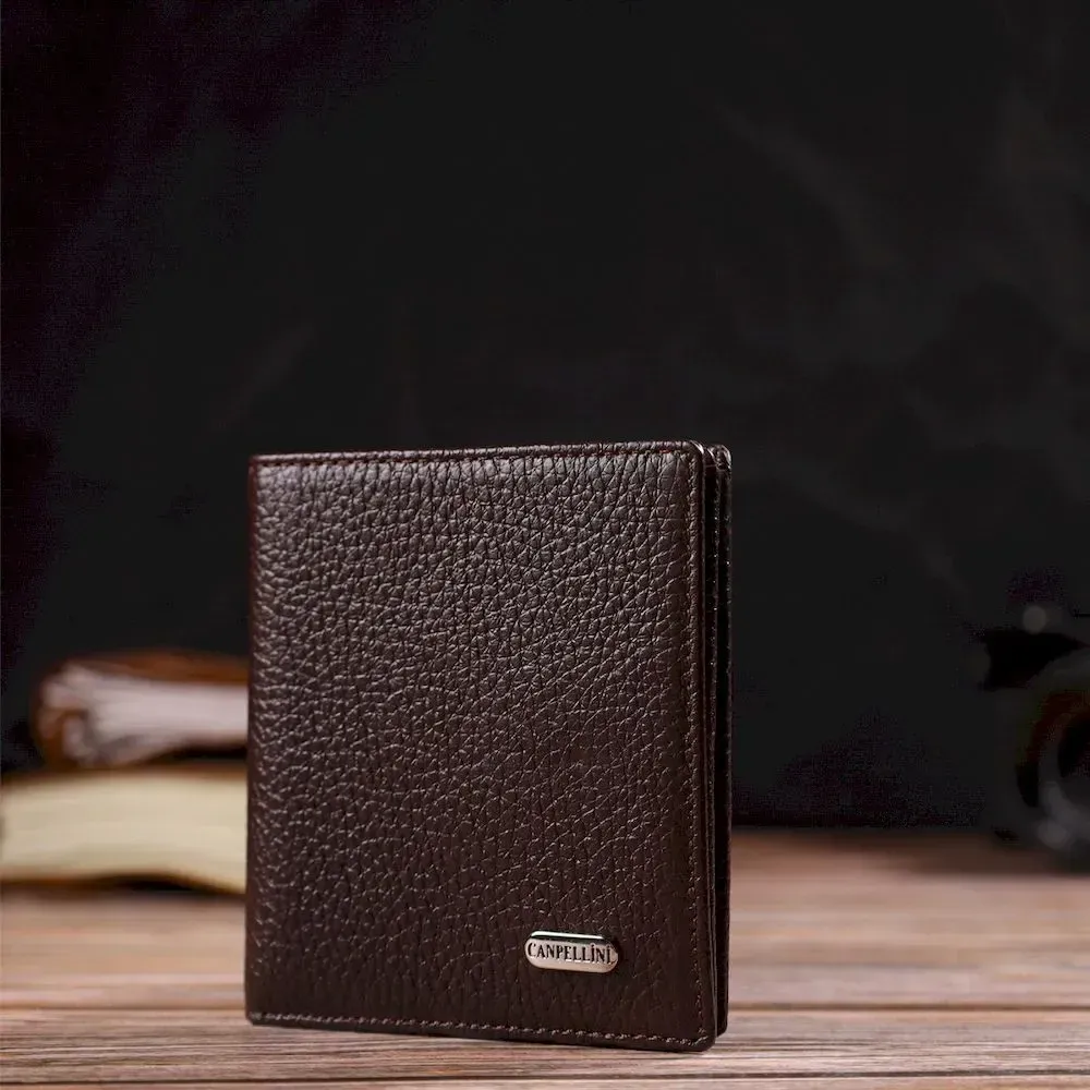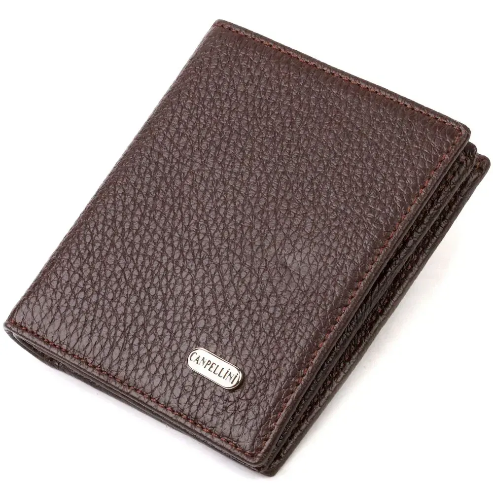 Компактне портмоне для чоловіків з натуральної зернистої шкіри CANPELLINI 21740 Коричневе