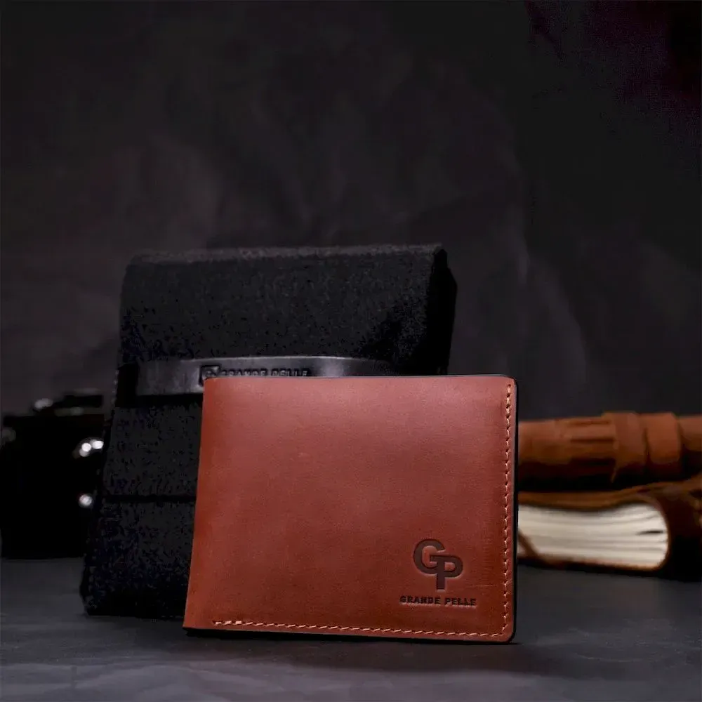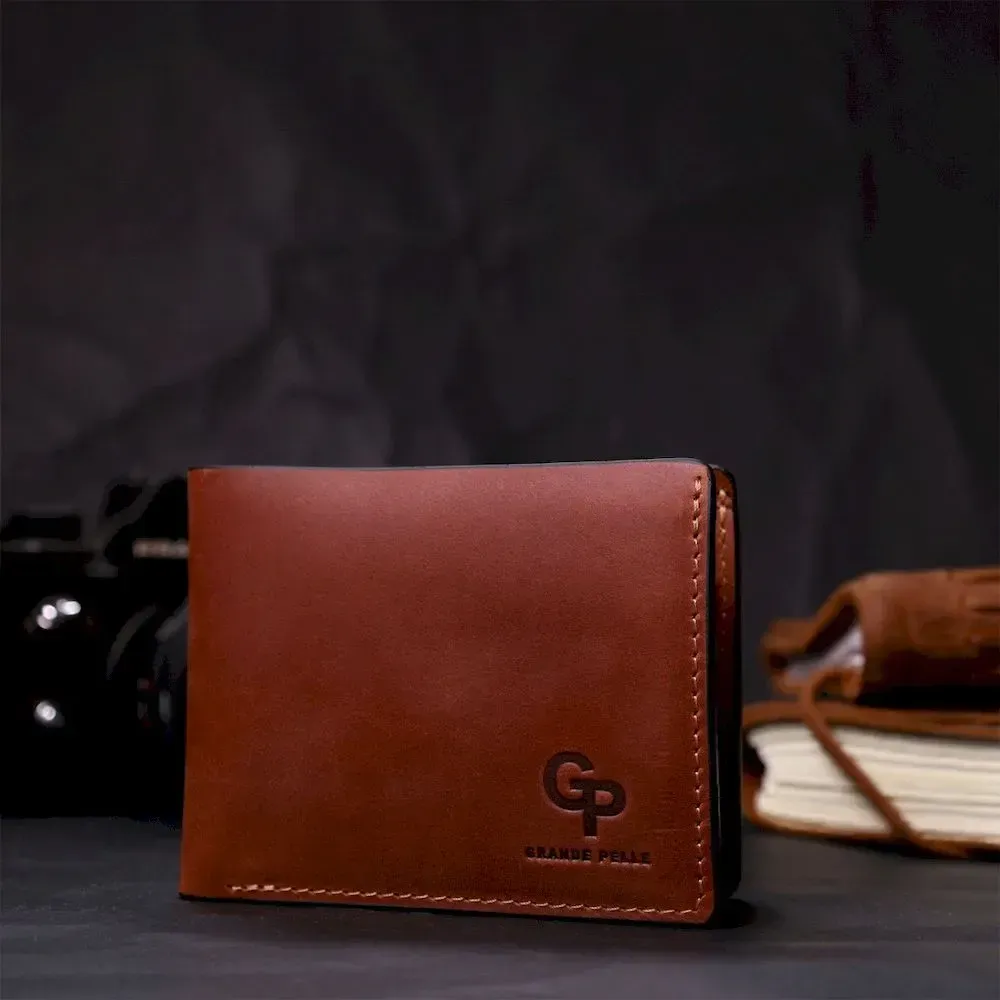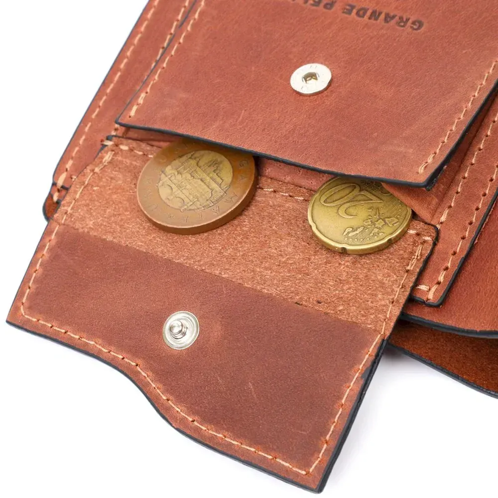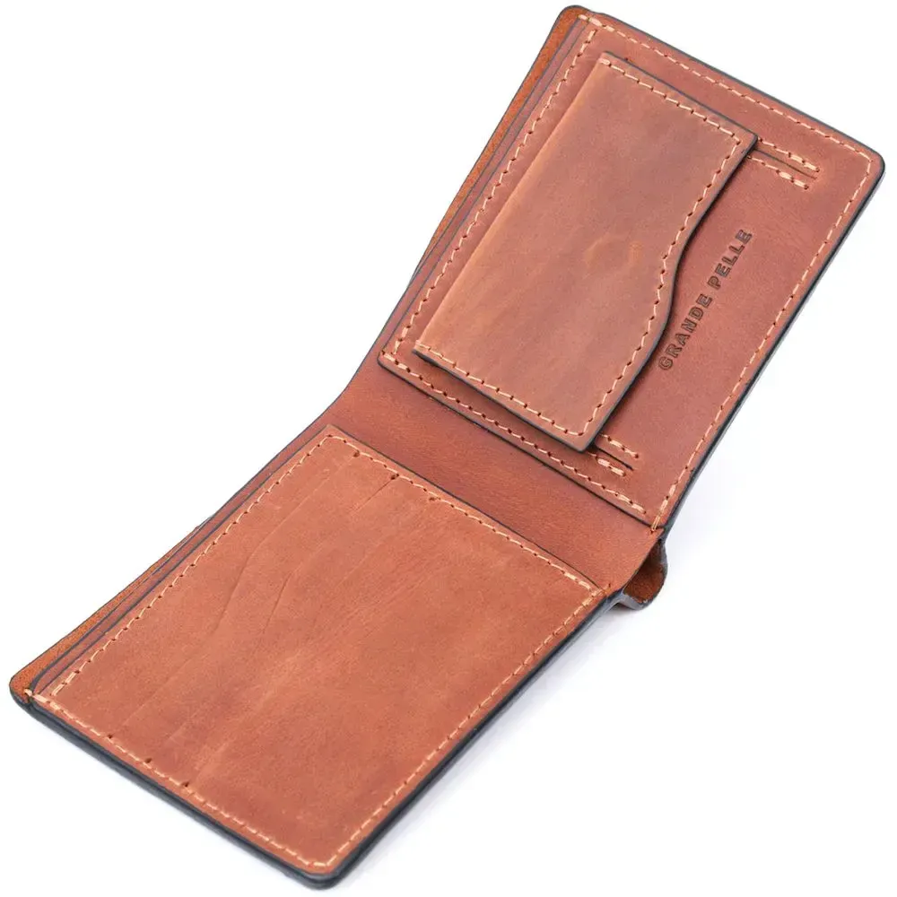 Компактний гаманець з натуральної шкіри без застібки GRANDE PELLE 11661 Коричневий