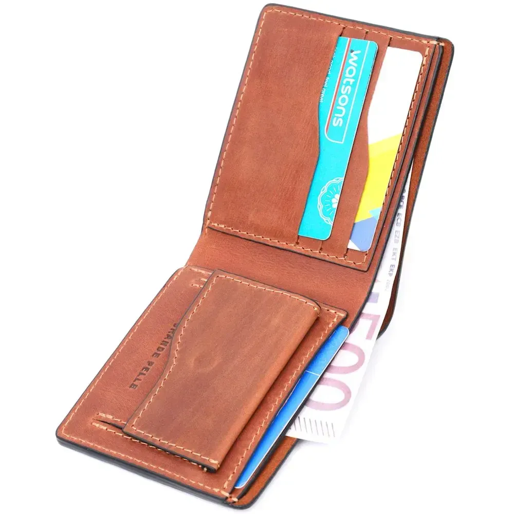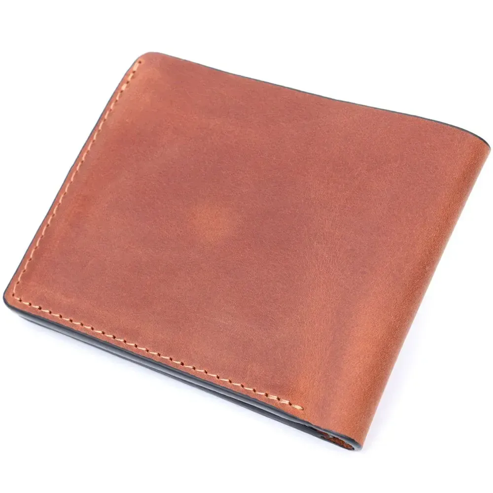 Невеликий чоловічий гаманець з італійської вінтажної шкіри найвищої якості у гарному коричневому кольорі. Сучасний дизайн, елітна шкіра, якісна фурнітура – все це підкреслює справді якісну річ. Всередині портмоне виконаний також з натуральної шкіри, без тканинної підкладки. Аксесуар підкреслить вашу індивідуальність та відмінний смак. Впевнені, що такий подарунок оцінить будь-який чоловік. Запакований гаманець у фірмовий чохол.