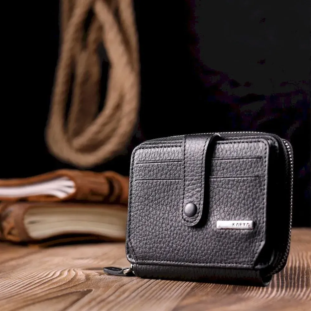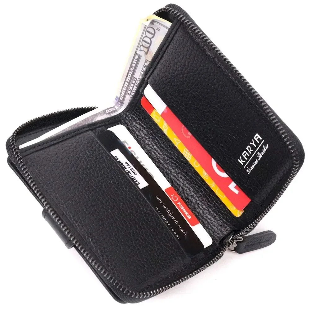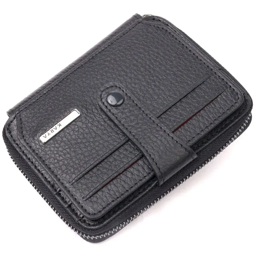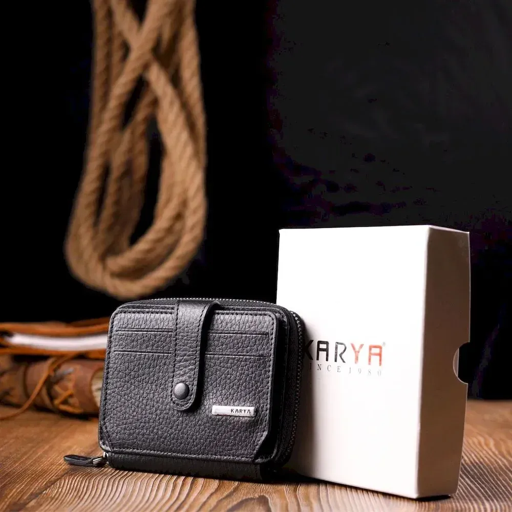 Компактний гаманець із натуральної зернистої шкіри KARYA 20971 Чорний