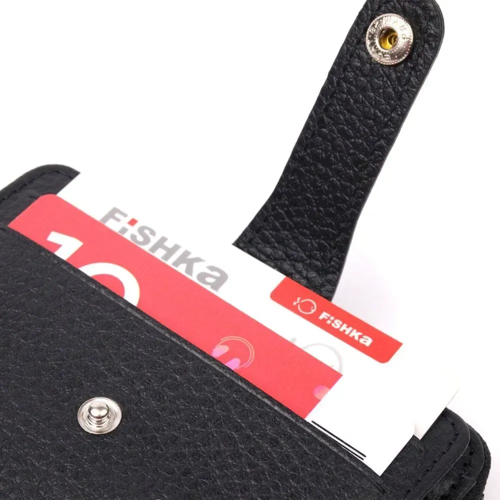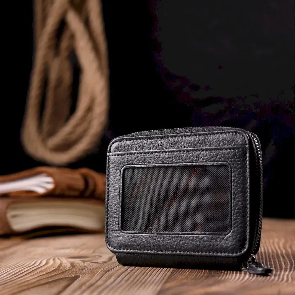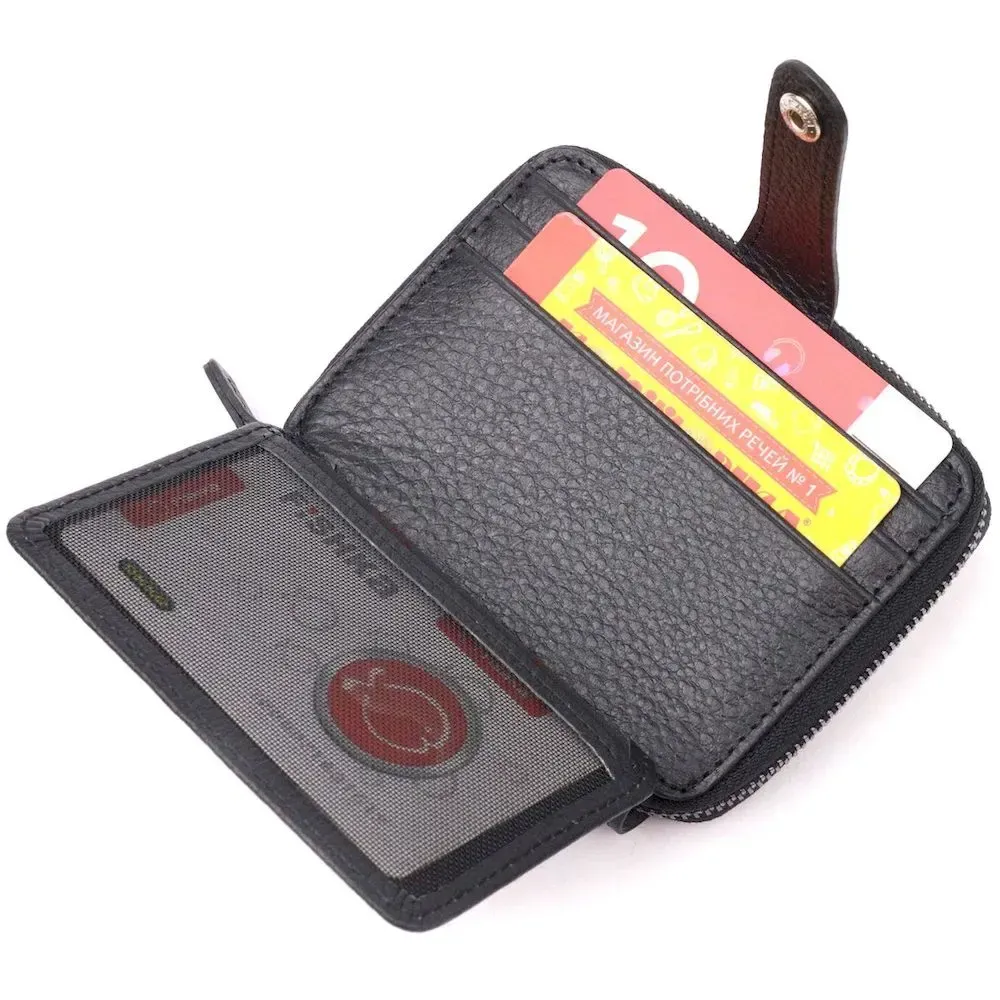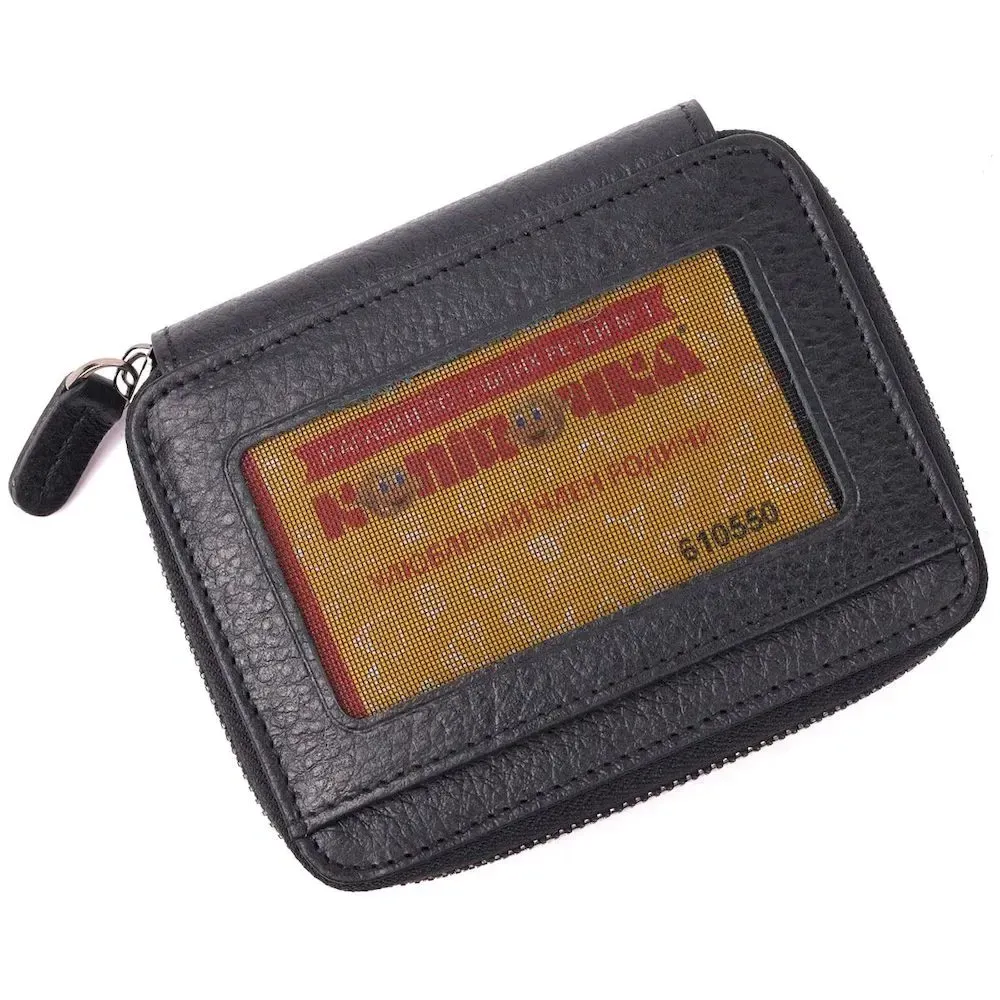 Компактний гаманець із натуральної зернистої шкіри KARYA 20971 Чорний