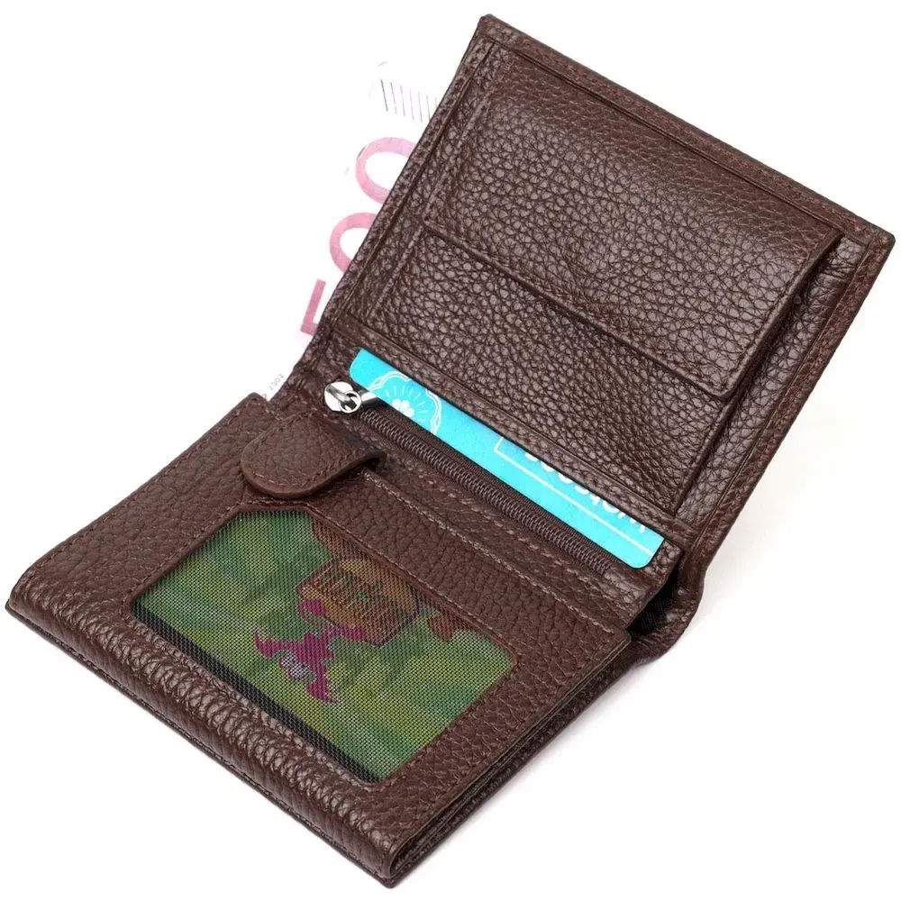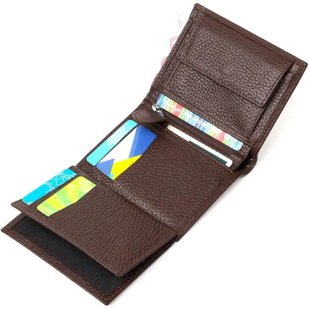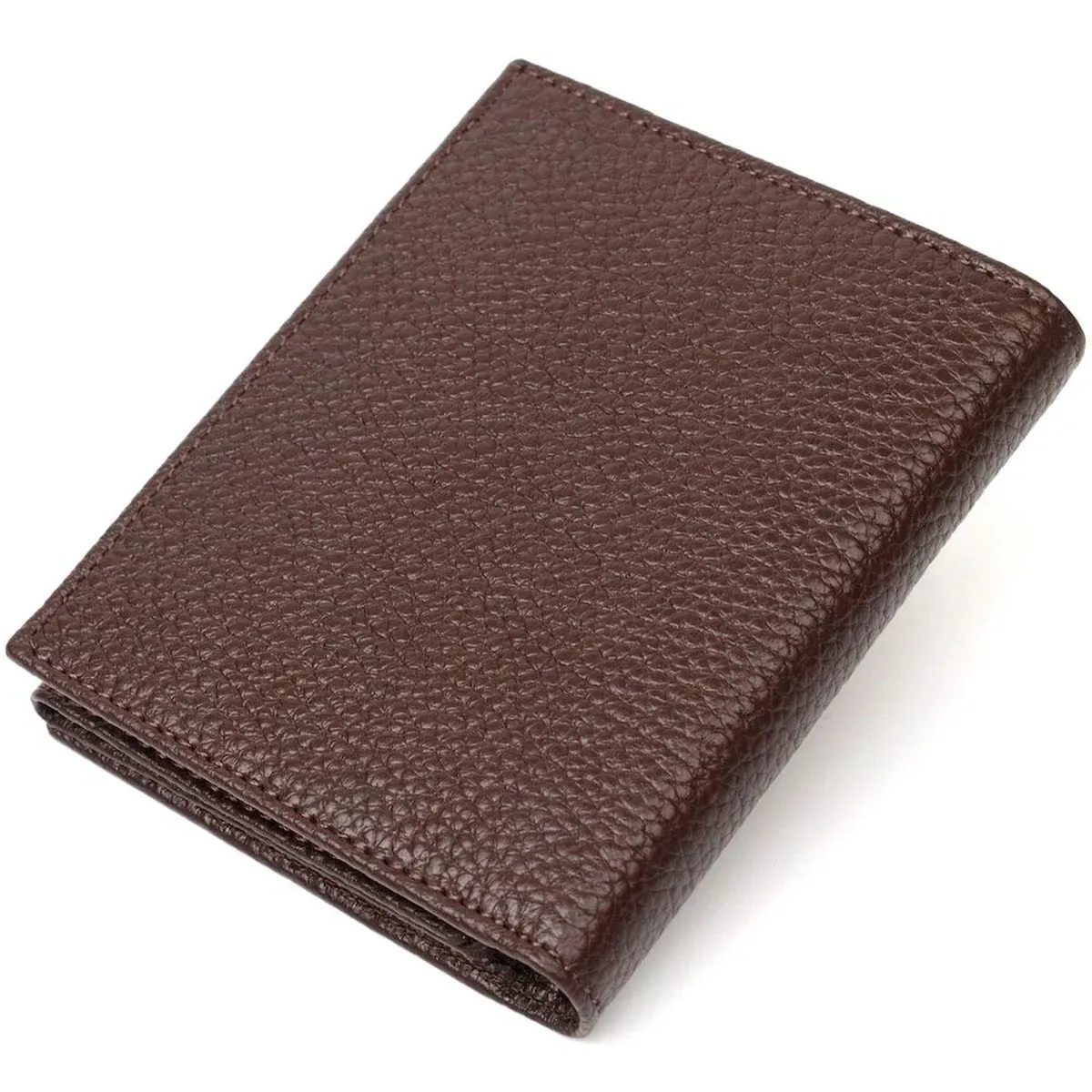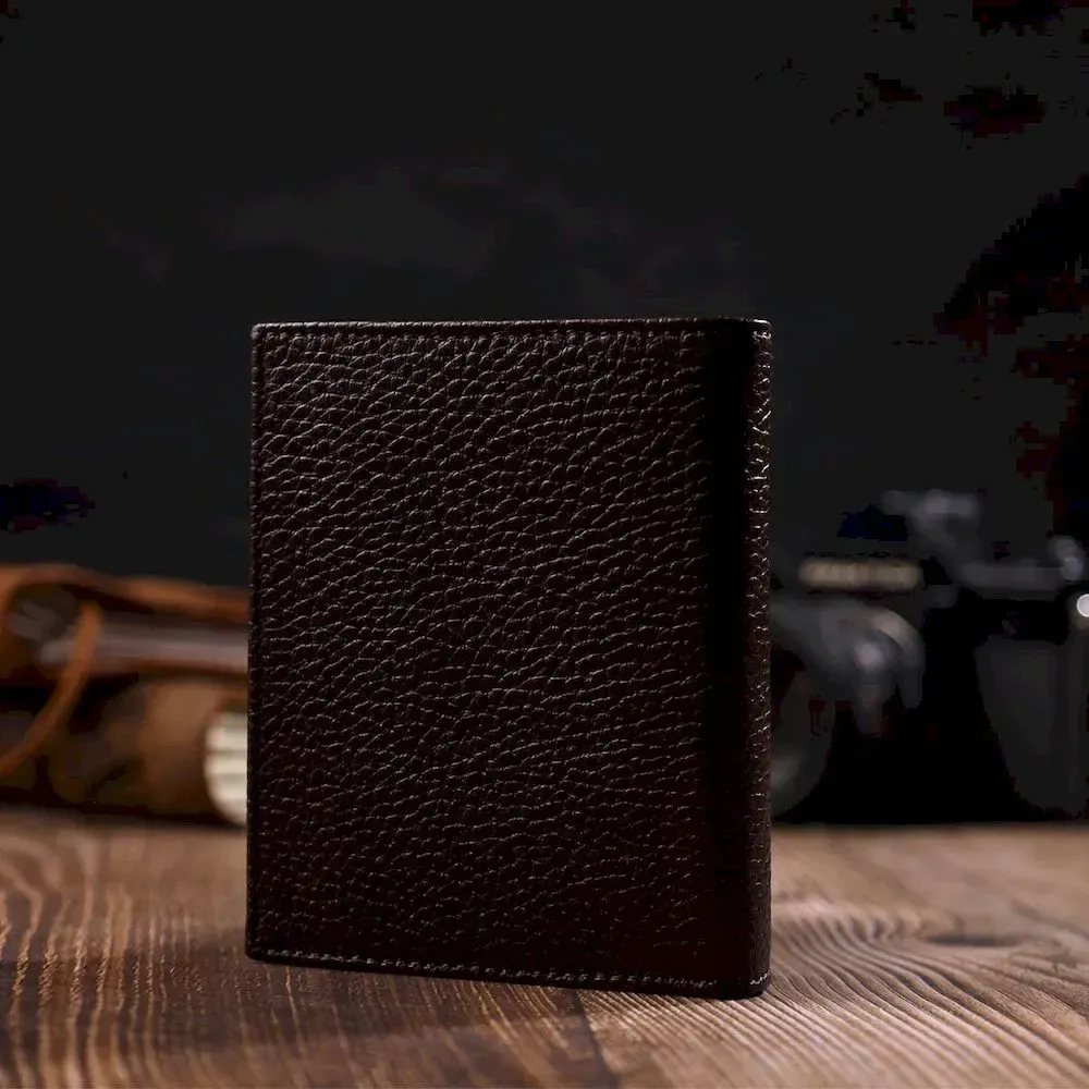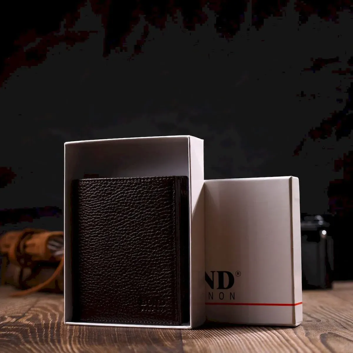 Компактний чоловічий гаманець із натуральної зернистої шкіри без застібки BOND 21989 Коричневий