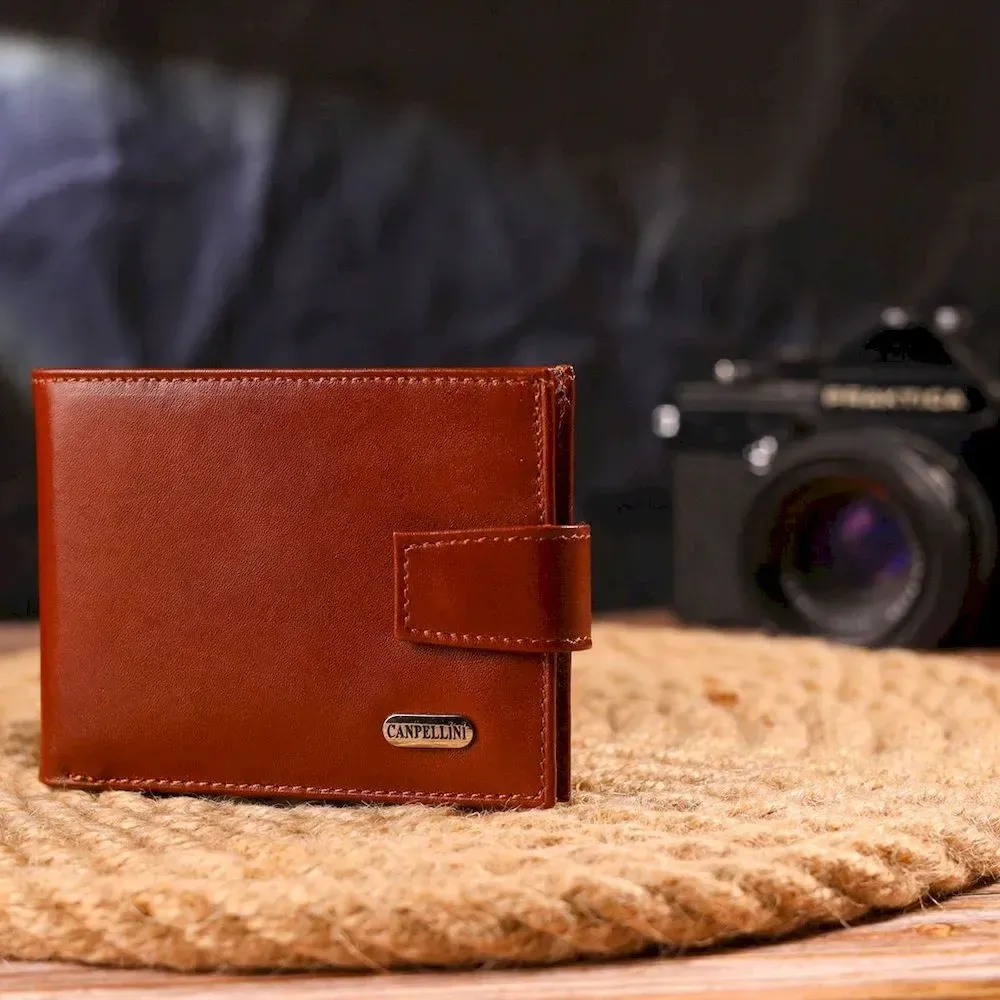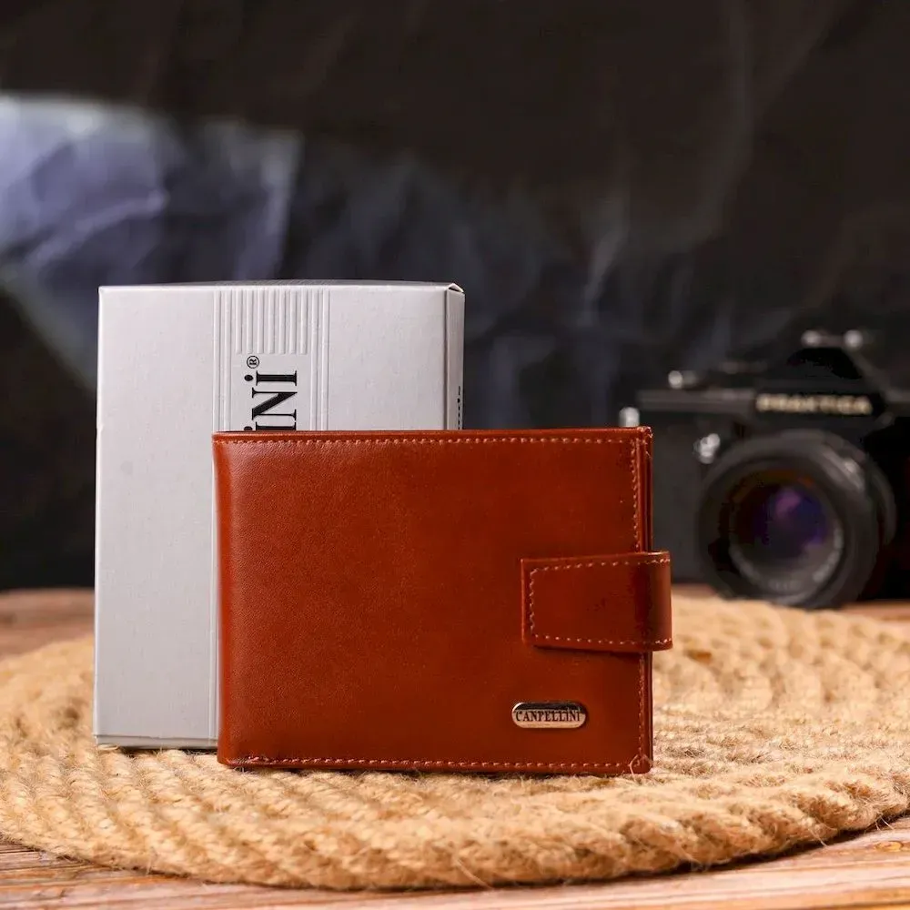 Компактний чоловічий гаманець із натуральної гладкої шкіри CANPELLINI 21508 Світло-коричневий