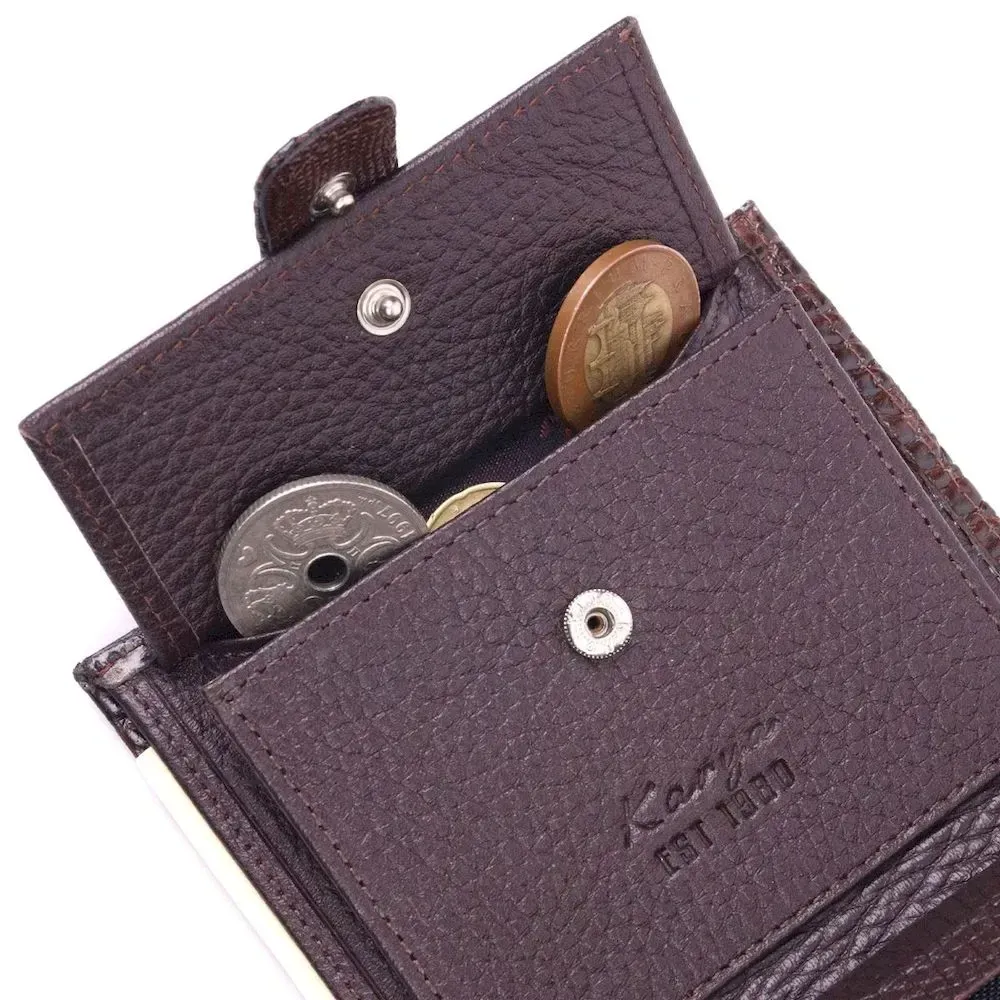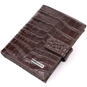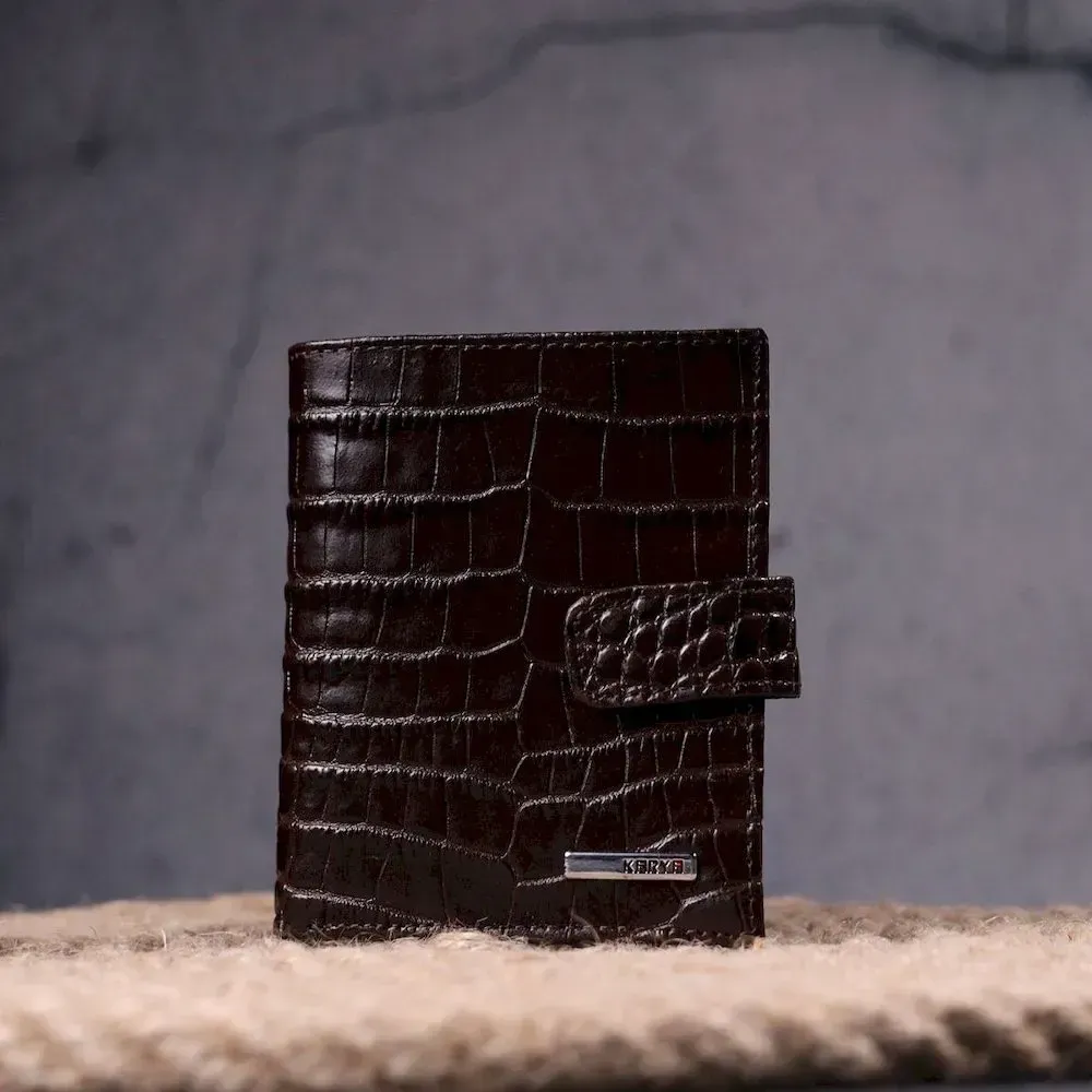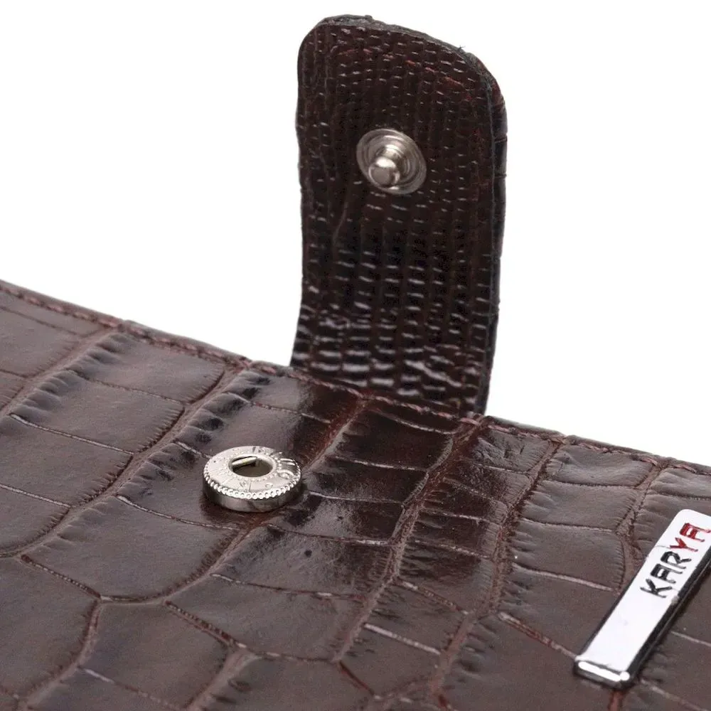 Компактний чоловічий гаманець із натуральної шкіри з тисненням під крокодила KARYA 21386 Коричневий