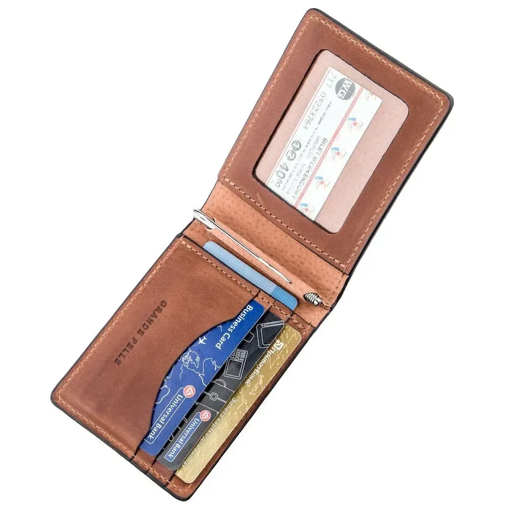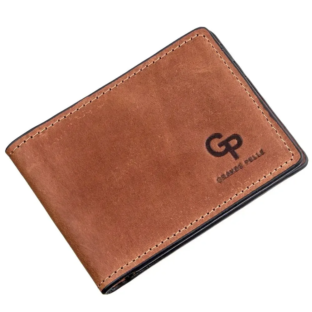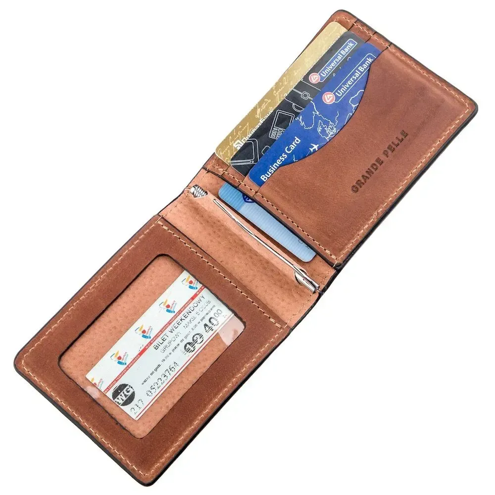 Компактний затискач для грошей без застібки GRANDE PELLE 11240 Коричневий