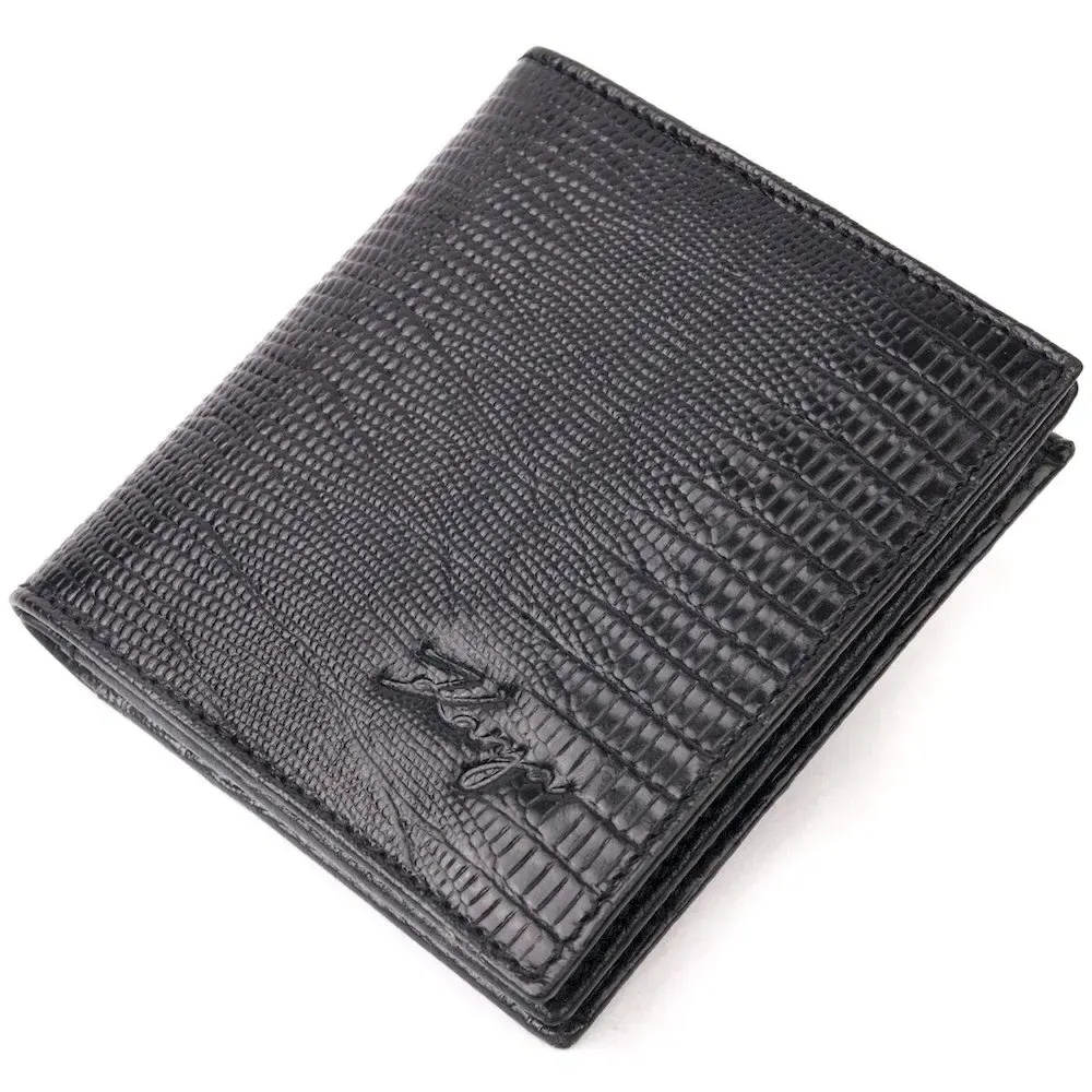 Компактний жіночий гаманець із фактурної шкіри під рептилію KARYA 21118 Чорний