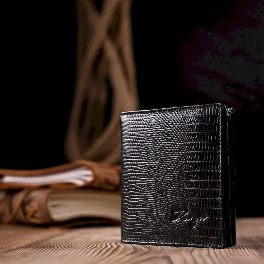 Модний жіночий гаманець з натуральної шкіри, з тисненням під змію, в чорному кольорі. Складається аксесуар навпіл, закривається основне відділення на кнопку , а блок для карт на магніт. Такий гаманець з натуральної шкіри - це ідеальний варіант на кожен день для тих, хто цінує якість, зручність та комфорт, а також чудово доповнюватиме Ваш повсякденний образ. Запакований аксесуар у фірмову коробку та пакет бренду. Вироби з натуральної шкіри завжди будуть чудовим подарунком для близької людини.