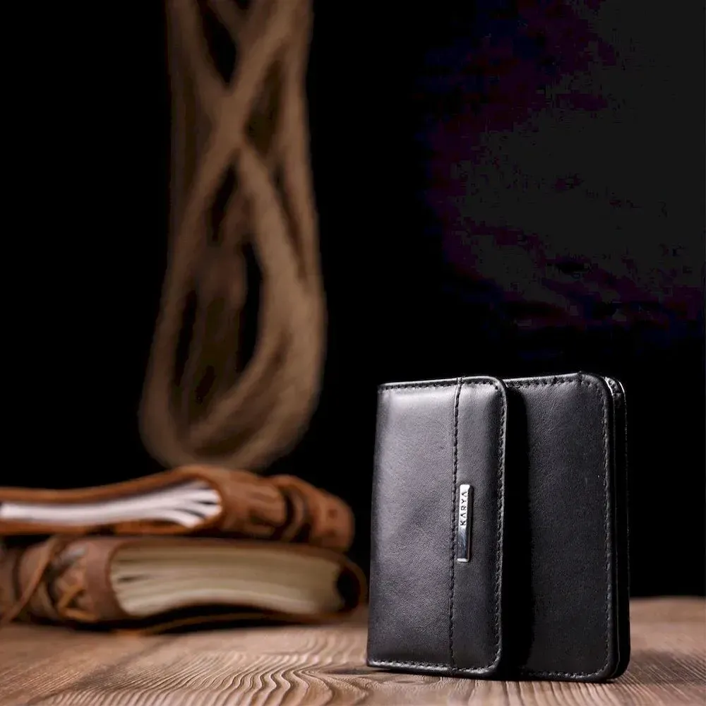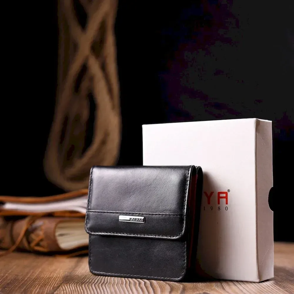Компактний жіночий гаманець із гладкої натуральної шкіри KARYA 21122 Чорний